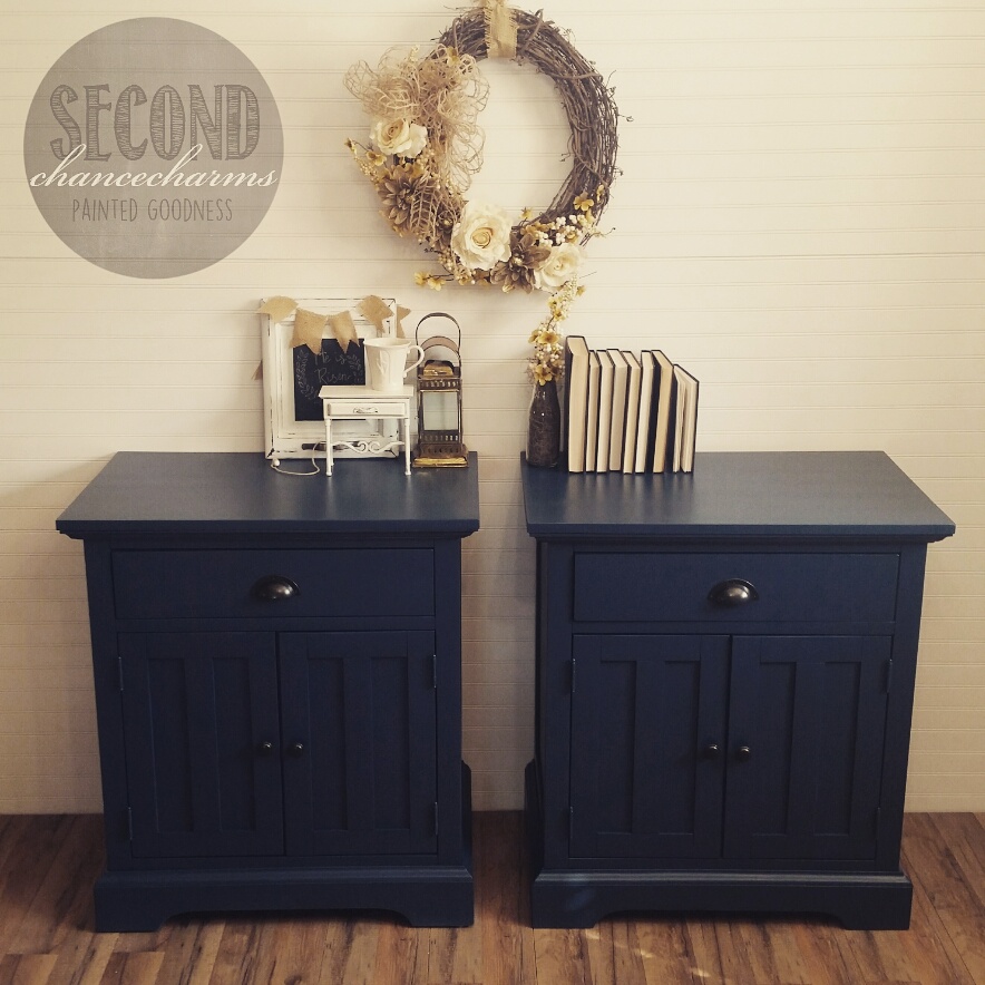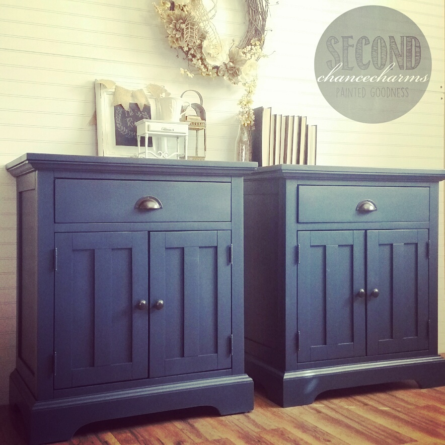 I love refinishing piece that have had their stories told and are ready for new series. Sometimes I get pieces in from clients that are in excellent shape, they have had it for 20+ years but they are ready for a change! With these nightstands my clients wanted a simple solid finish in Sherwin-Williams Gale Force. Updated the original hardware in bronze. A classic finish that will be bold and beautiful for another 20+ years!