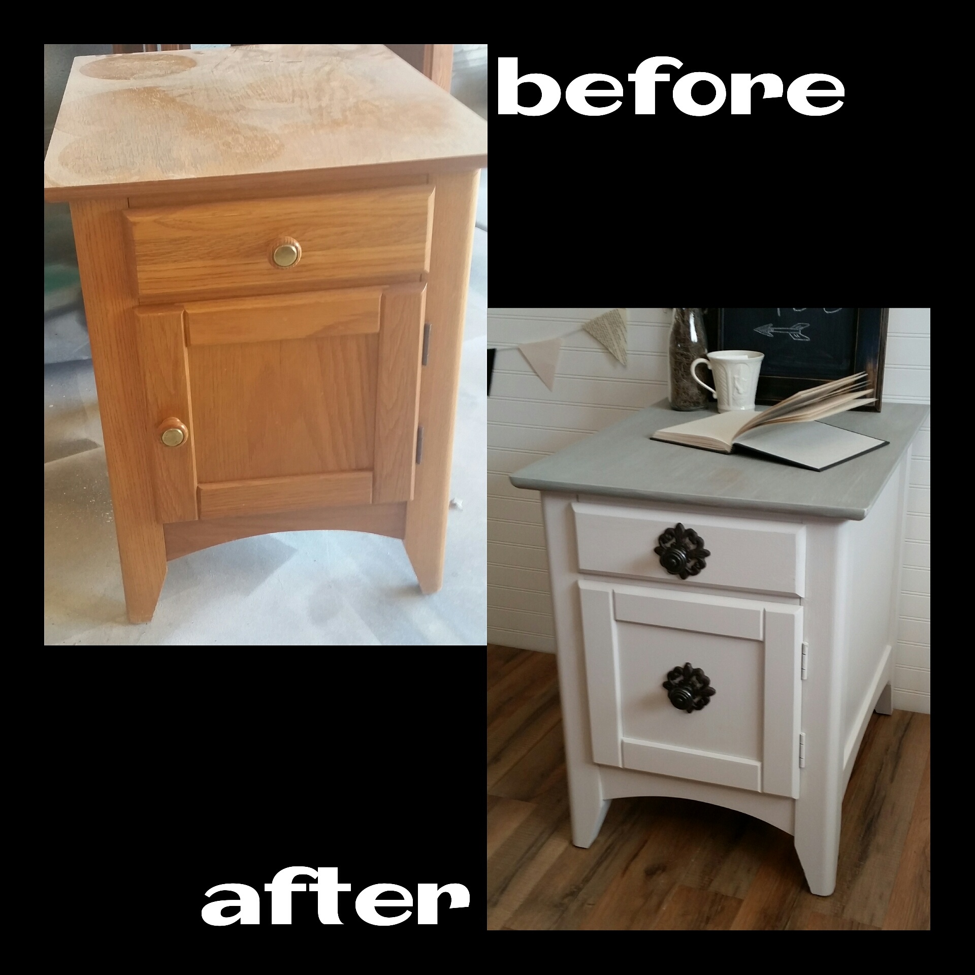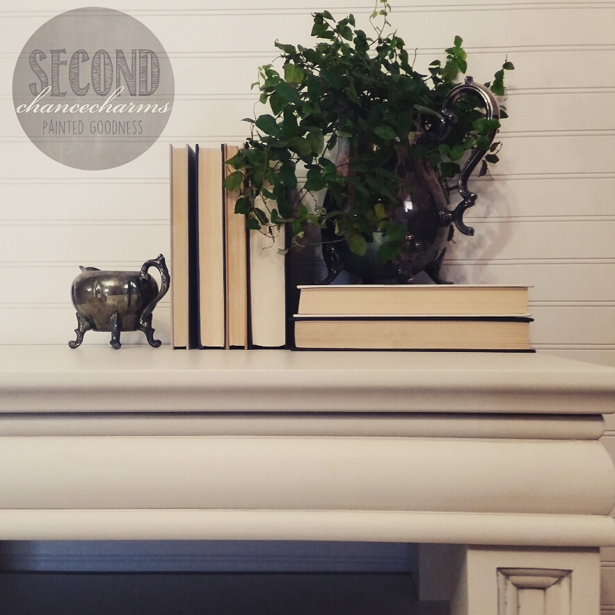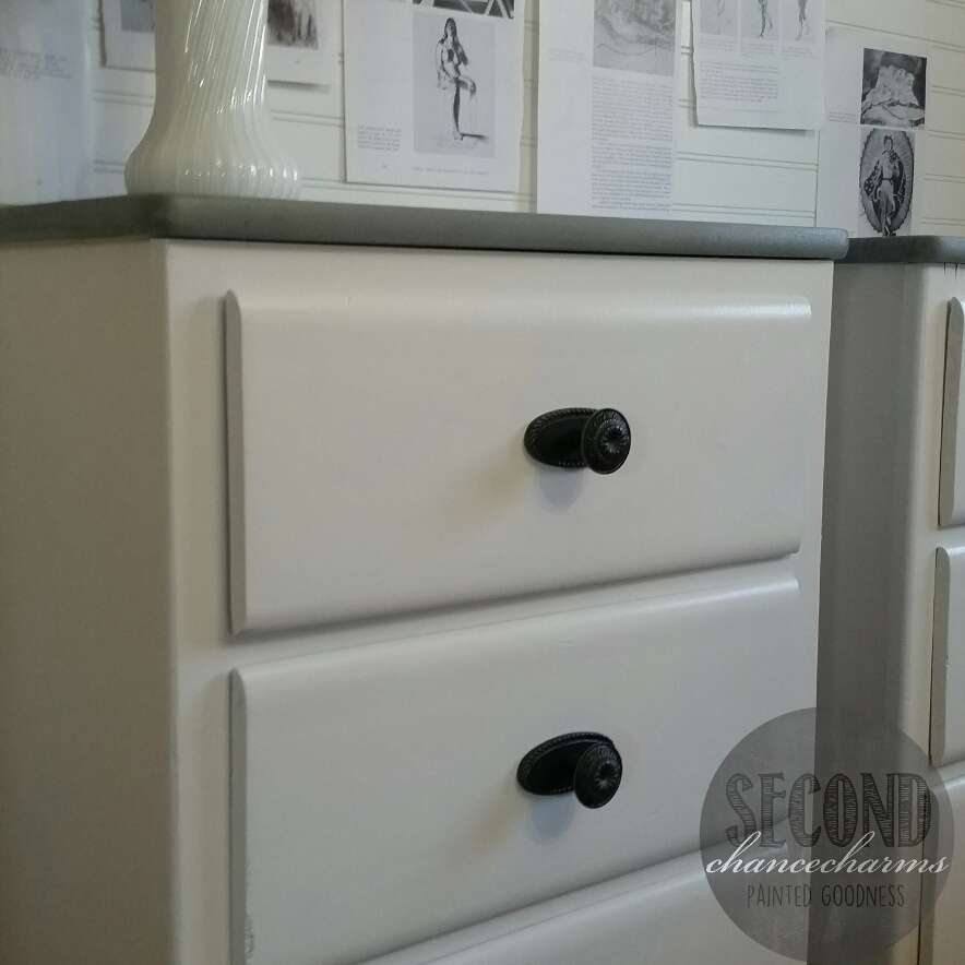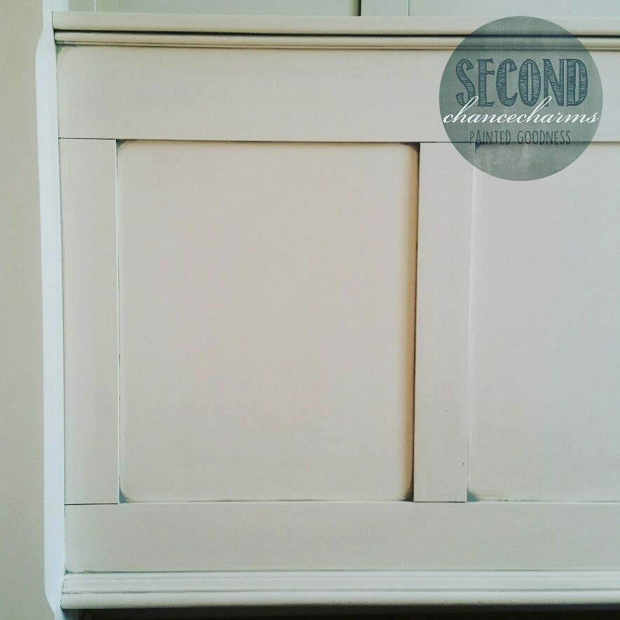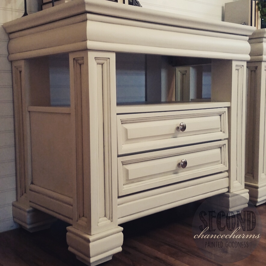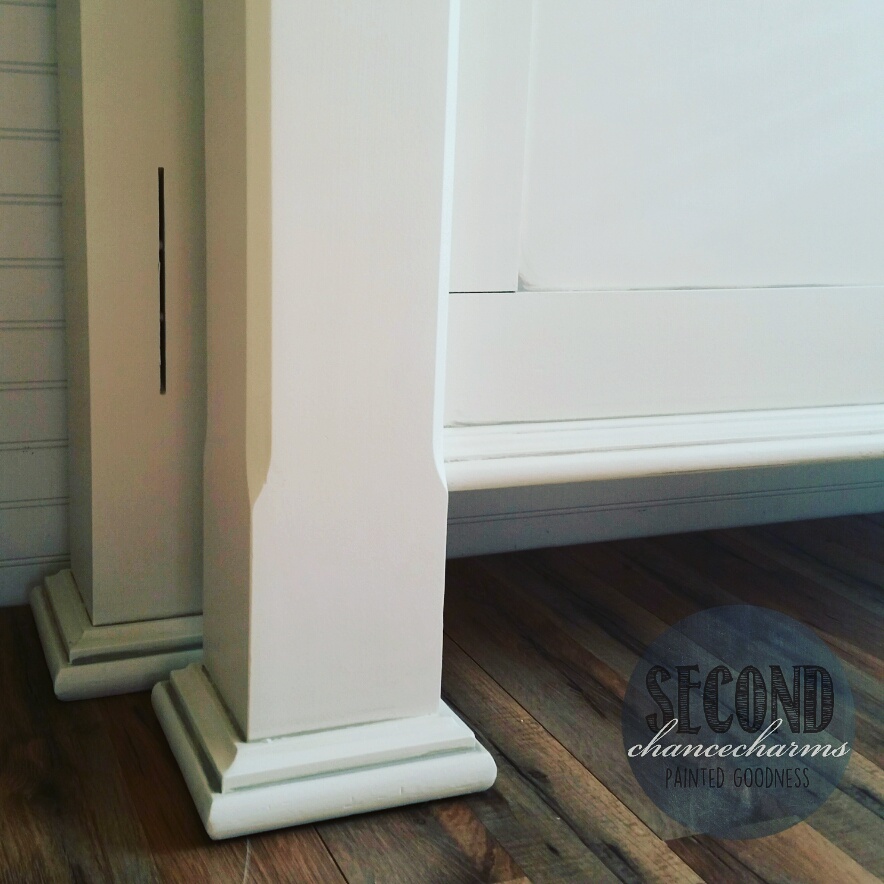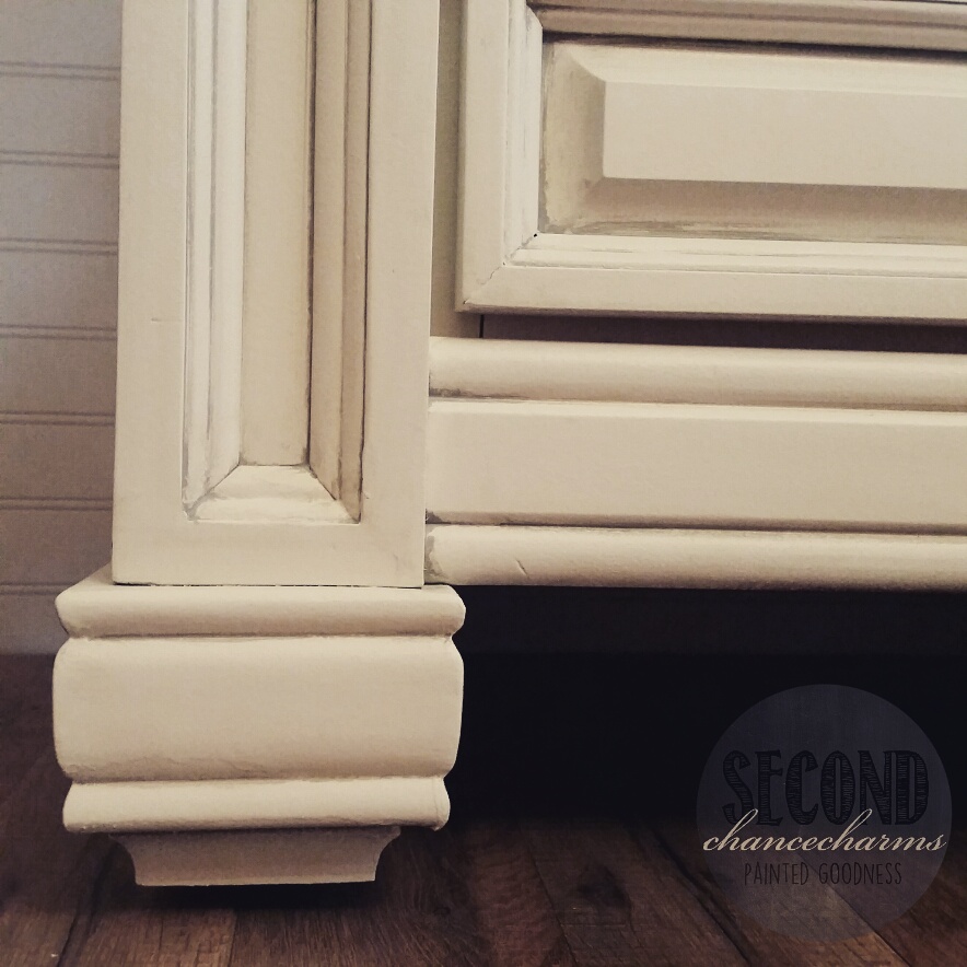 Refinished in Sherwin-Williams Snowbound and glazed in grey.