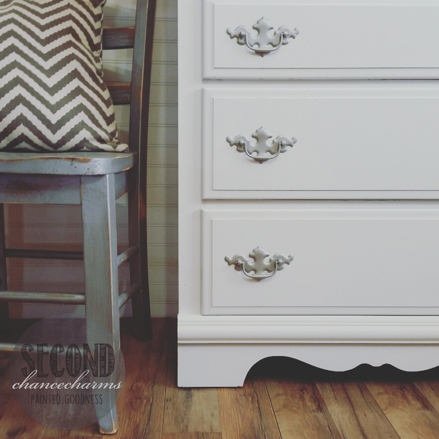 This chest of drawers is a special piece to my client, it was gifted to him from his grandparents when he was a baby. Now refinished in Sherwin-Williams Snowbound to be used for his daughters nursery to last another generation! Original hardware updated in nickel.