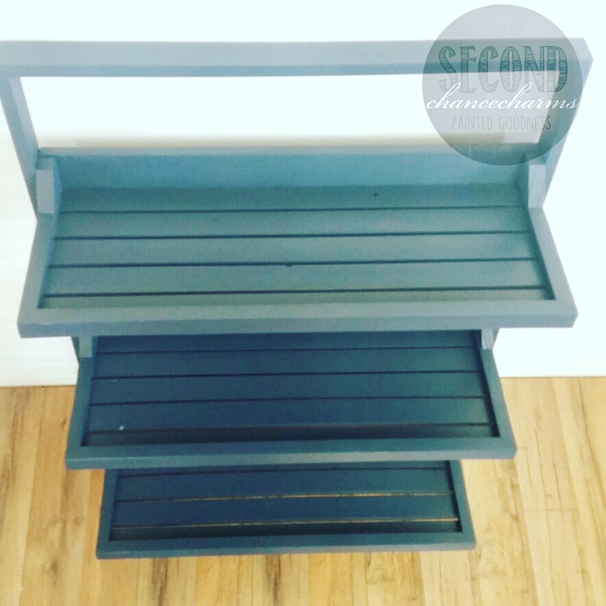 Shelf Published on June 11, 2016June 11, 2016 by Second Chance CharmsLeave a comment A shelf built by my clients friend for her. Refinished in Gale Force. Perfect for any small space needing storage.