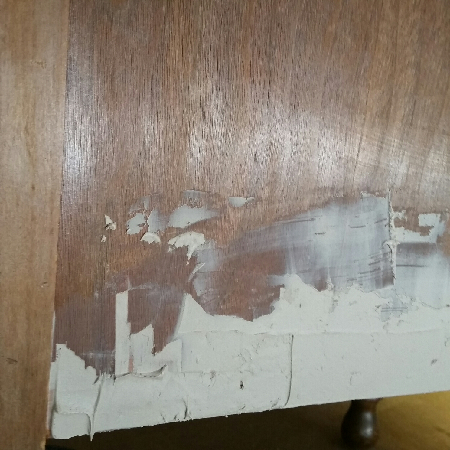 imageI went ahead and scraped off all the lose ends of the lifting veneer with a puddy knif and filled that area with Wood Filler. Once the filler had dried, I sanded it down to a smooth surface using 80 grit to a 150 grit sanding paper.