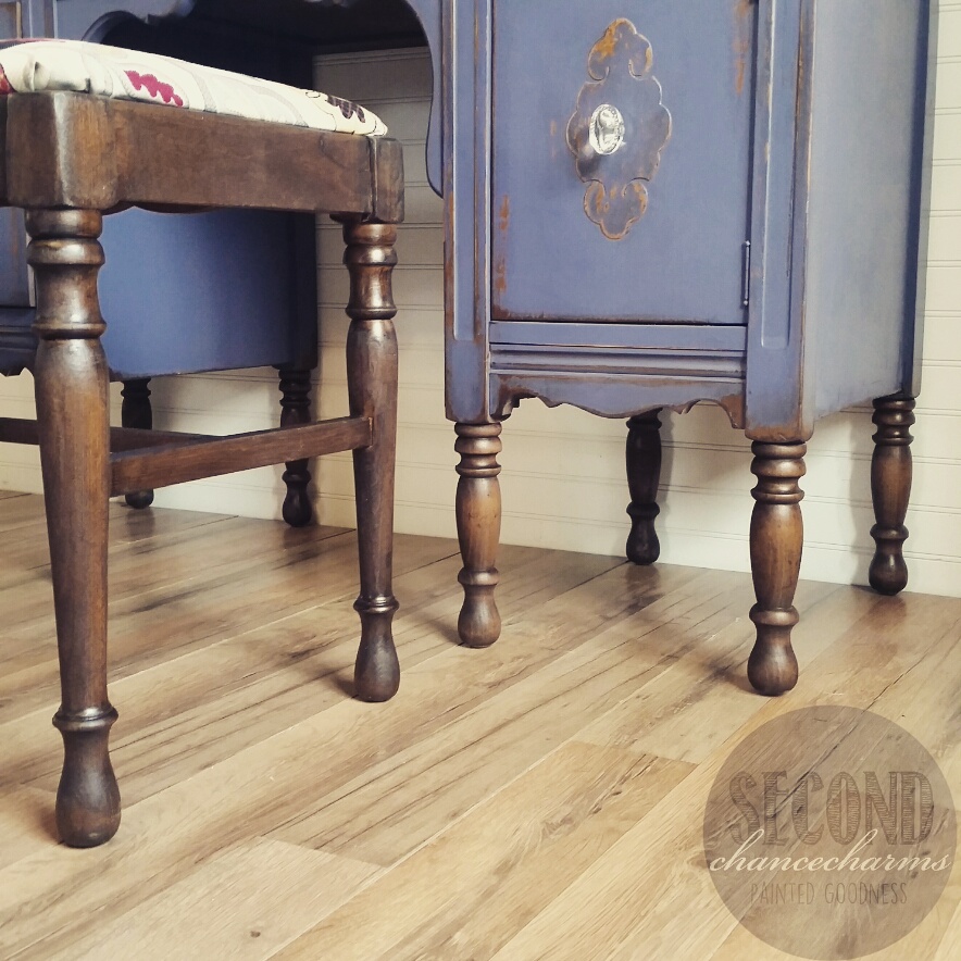 Refinished vintage vanity and stool. Come check out my process on this Second Chance Charm!