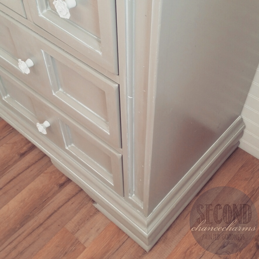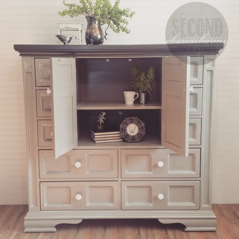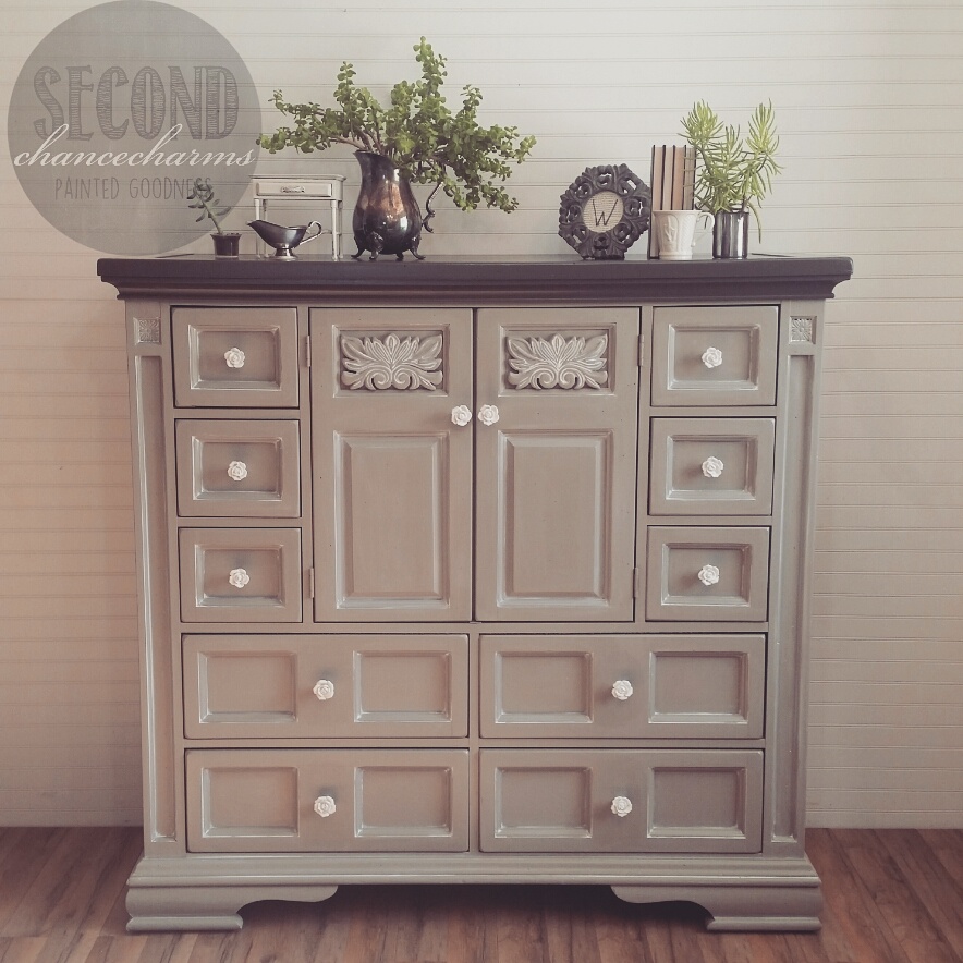 Depending on what style my client desires, this determines if I need to prime the furniture or not. With distressed pieces, which is in this case, I do not prime. When distressing all layers of paint would show through (more on that later). After the prep work is complete its time for the part everyone loves! PAINT ALL THE THINGS! *yes, I shout this and wave my arms in the air*.My client chose Sherwin-Williams Mineral Gray at our Color Consultation. I adore color and for a statement piece- its perfect!!! I use a commercial sprayer for all my pieces. It gives me an even coat, flawless coverage and a smooth feel. I usually only have to do about 2 coats.