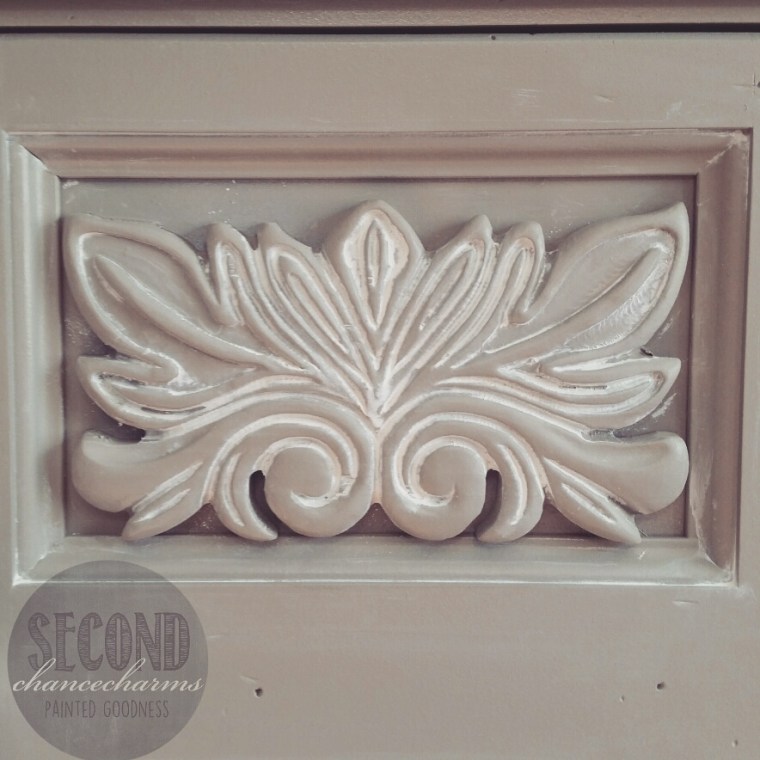 Once my paint had cured its time to distress! Distressing is when you see the wood underneath the paint come through. There are many ways to distressing a piece. In the fine lines, only is areas that have a high traffic touch, all over etc. I have found that all refinishers have their own style, making them their own artist. Perhaps there is no right or wrong way to distressing a piece. If it pertains to your client base and makes you love your style- then that’s all one could ask! I like to have my distressing in the lines and around areas of high use, like the legs and drawers.As a courtesy to my clients I send them progress photos in all the main stages: sanding, priming, painting, detailing and the final reveal. I like to start light in distressing and send them updated pictures. This is the time where they can really start to see their creation come to life. If they want more distressing they can tell me at this point, or tell me- its lovely the way it is. This goes for glazing as well. (more on glazing at another time). My client wanted a light distressing on this piece. The way I distress is using a fine grit like 150 in small little paper pieces sanding off the paint by hand. It takes time, but you have more control and by using a lighter grit sanding paper it doesn’t chew up the paint around the area where you distressed through to the wood. Leaving a total smooth coverage from wood grain to paint. Patience is perfection.