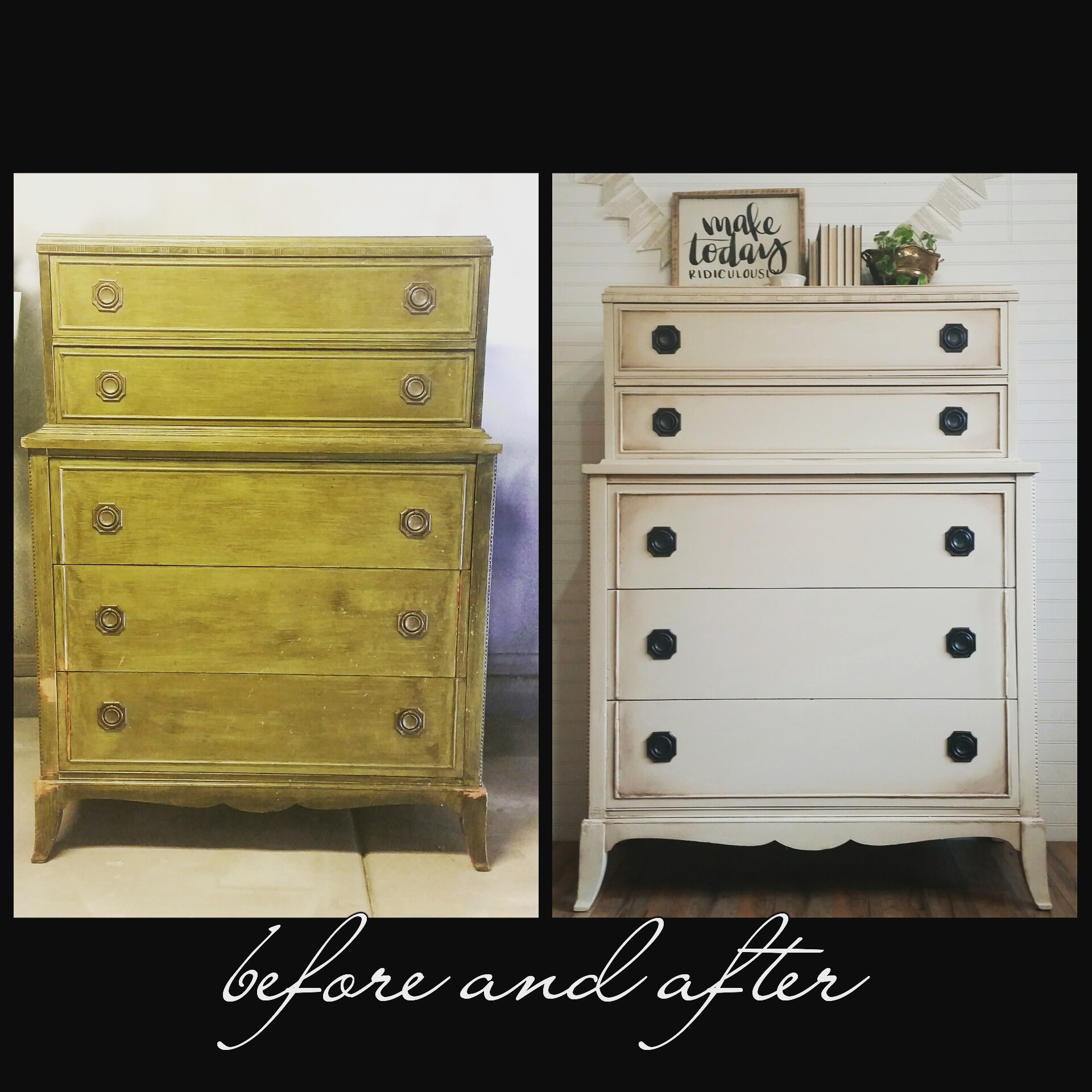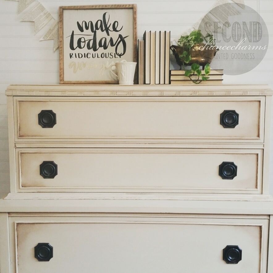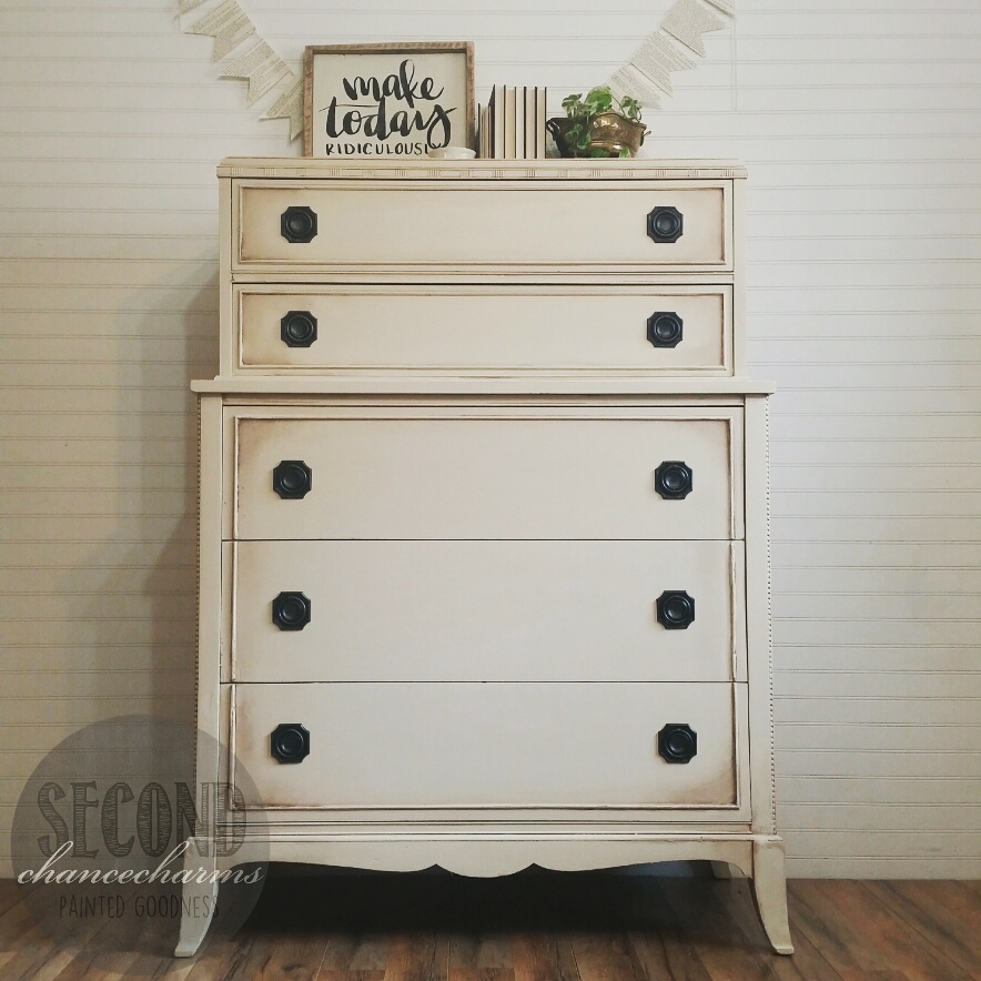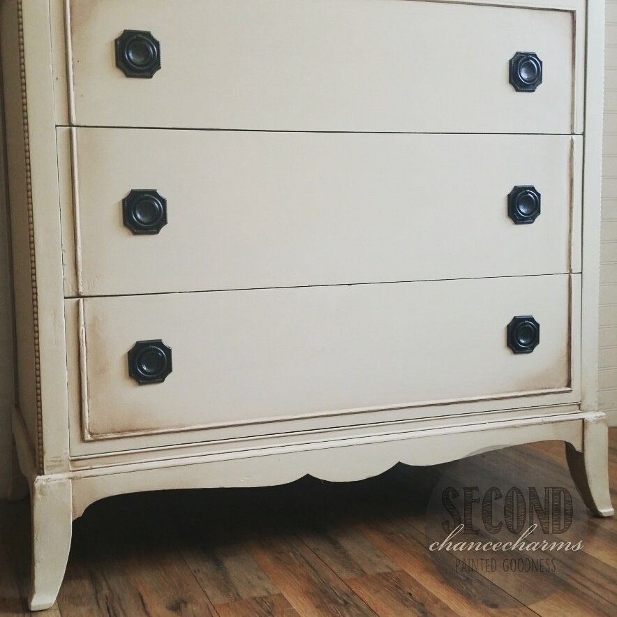 I found this fellow and his sister together! I still have her over in In the Studio ready to be customized. I refinished this wonderful chest of drawers in Sherwin-Williams Sand Beach and glaze him in brown. Updated the hardware in bronze. Measurements are 37.5″ long x 51.5″ tall x 20.5″ deep. 5 drawers. This piece has some fantastic subtle details. Dovetailed joints. Cute simple feet. All one solid piece. He is up for sale!!! Click on over to Shop Selections to see pricing and to contact me if interested!