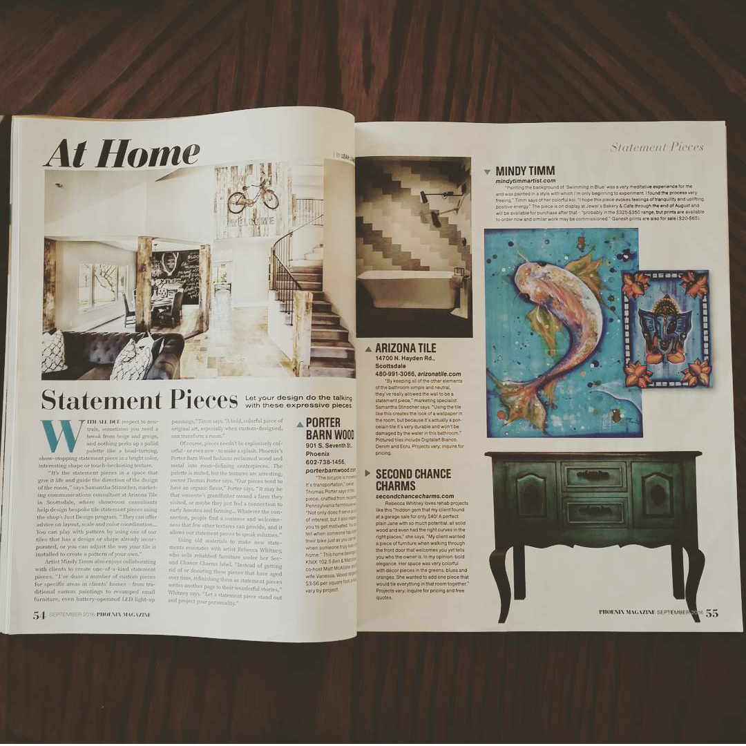 After completing my shopping with little man in tow, I thought to myself, “I should check to see if the September 2016 issue of Phoenix Magazine is out yet”. Now see, I have been keeping a secret from you all. A personal reporter, Leah, contacted me back in July stating she just enjoyed my work and wanted to interview me for her magazine piece about Statement Pieces for the September issue. Of course, I was thrilled!!