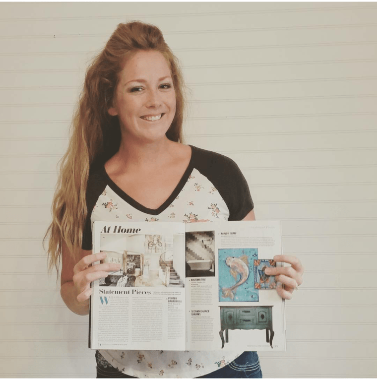 I am still shaking. Giddy. Smiling…. Completely over the moon!! I want to give a special thanks to my client, Amanda, for allowing me to give her garage sale find a Second Chance. After all, its her piece that caught the eye of Phoenix Mag!!!