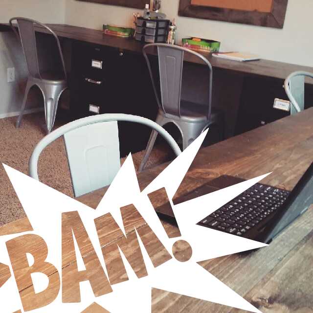 However, this year was our first real big build! Daddy got a promotion and was going to be working from home a little bit more then normal and we all needed a special place for homework and office detail. Before, we would be scrambling to move our books, papers and bills from the kitchen table so we can make room for dinner plates. Complete chaos!! I absolutely hated the feeling of disorganization and clutter- moving one pile to another, losing paperwork, missing important details. ‘Time for change’ I said!!! And what better time then a summer project! So July 2016 we turned our playroom into a study work room! The boys went through their toys and made piles. Donation, trash and keep. Even my youngest, Emmett 2.5 years old, was excited to donate toys he had forgotten about or trashed the ones he played a little to hard with. My men went through their belongings, by the grace of God, I was surprised it wasn’t hard for them! Now their rooms housed their important things! After the room was completely cleared out we went straight to painting! The boys and I picked out the color Reposed Grey from Sherwin-Williams. This grey is so calming yet handsome! I had an idea that I wanted to create for our space. I found four black filings cabinets on a garage sale site for $40 bucks each. I felt that was pretty darn good- especially when they are originally $130 and up – brand new from Office Max. These came from an office close out, so they were in great shape still!