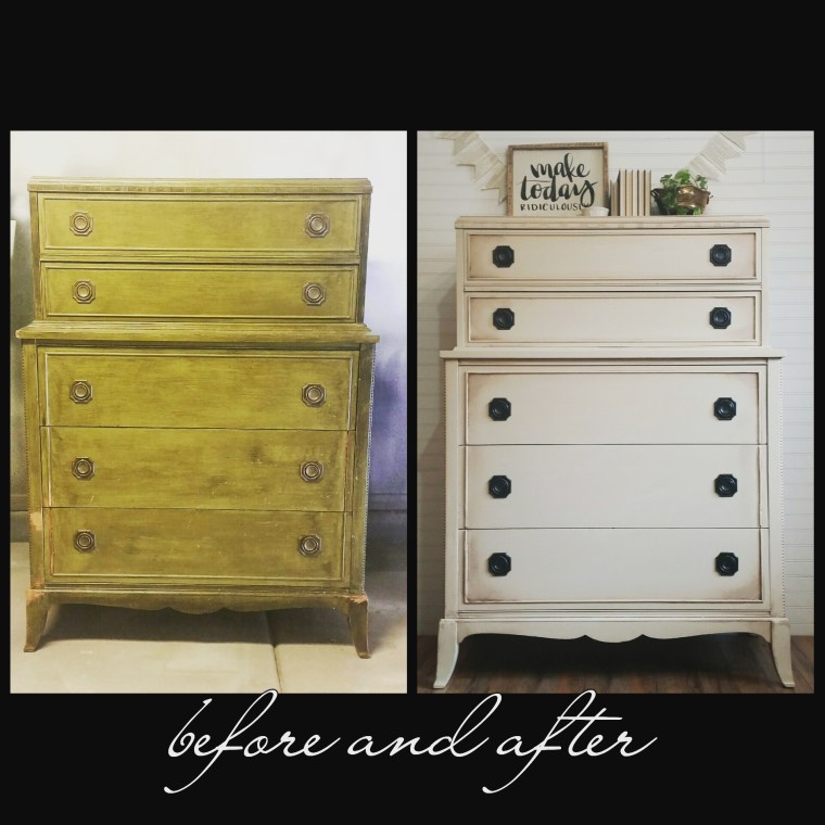 Back in August I refinished this antique gals brother, a tall chest of drawers. You can find his debut here at Antique Chest of Drawers post. He is even up for sale in Shop Selections along with his sister, individually or as a set. I decided to refinished his sister to match.