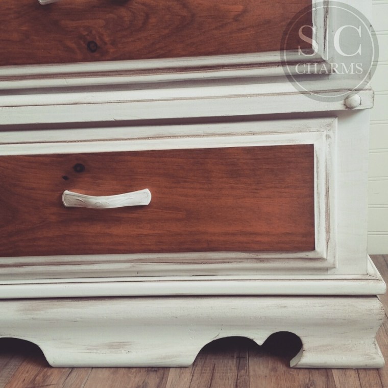 Refinished in Sherwin-Williams Snowbound and heavily glazed in brown. New hardware revamped to match. Finalizing this set with a custom stain match. Total farmhouse love!