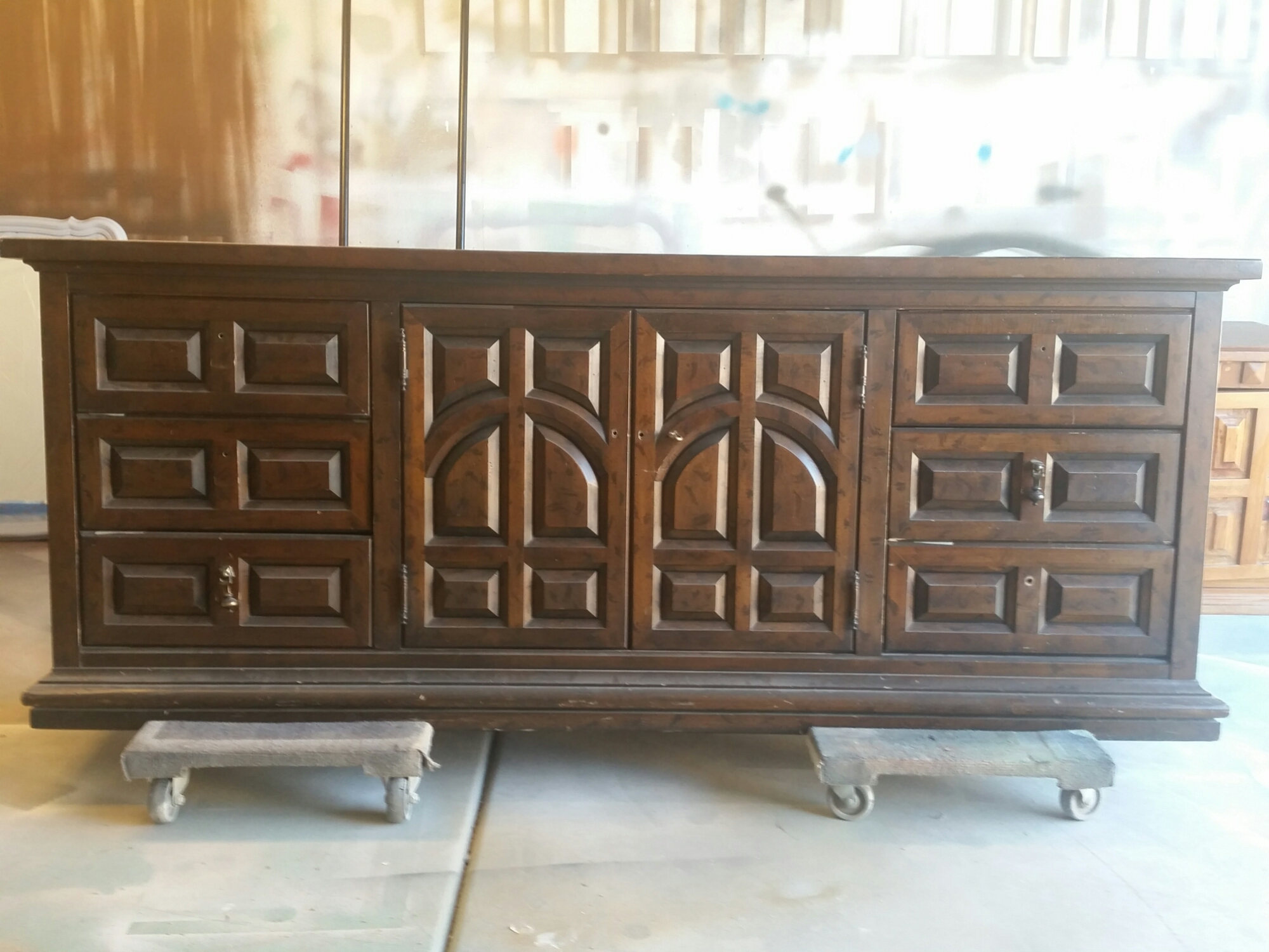 One item that was a total of six pieces, making that project the biggest I have ever done in one sitting. There were two non custom items, a media console and a buffet, that found themselves refinished with what I had envisioned for those pieces to transform into. Farmhouse chic and rustic vintage. Both stunning and classify themselves as Statement Pieces! They are for sale, you can view them over in Shop Selections!