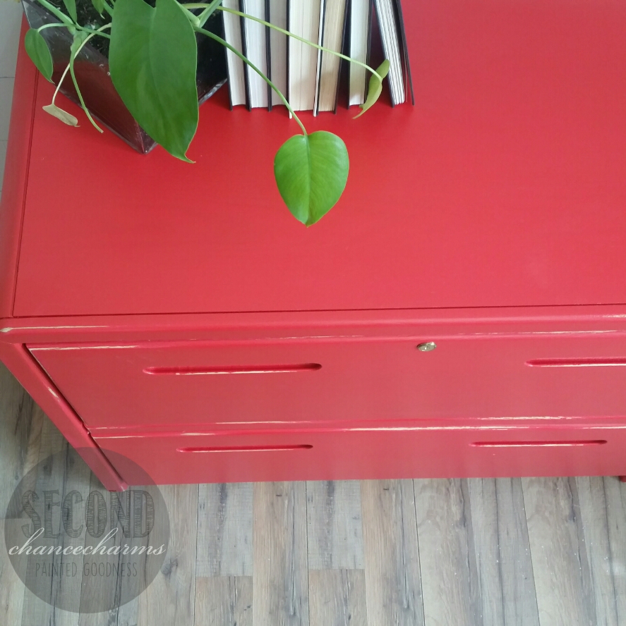 Refinished in Sherwin-Williams Real Red and lightly distressed.