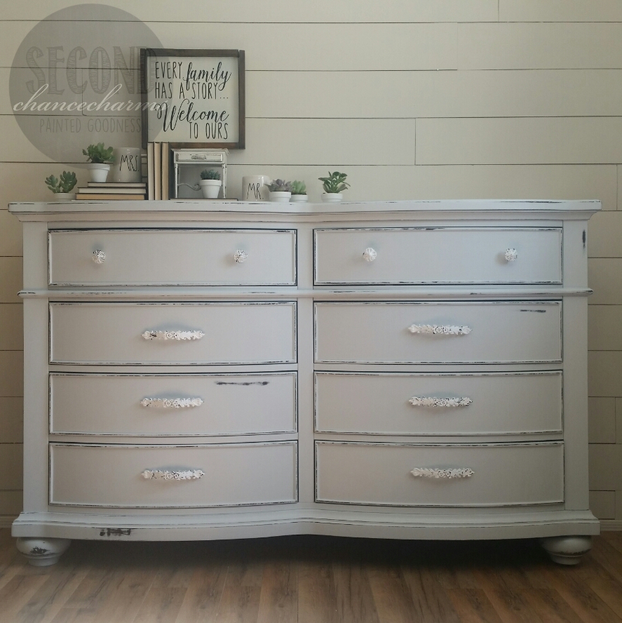 Continuing with the custom master bedroom transformation from traditional style into farmhouse chic, today I am sharing with you the dresser. Yesterdays post of the His and Her Nightstands was a complete success on all media sites over at Second Chance Charms Instagram & Facebook page.