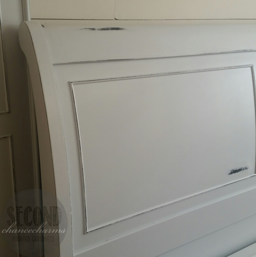 When the paint has completely dried I distressed the pieces. I use a 150 grit sanding paper. I like to use little small pieces and distress in the lines and on certain areas, making sure it doesn’t look “cow-like” as I like to call it. I don’t like the uniformed spotty look. There are many ways to distressing furniture, and I have seen many different styles, I am just sharing with you what I like to do and what I think looks gorgeous.