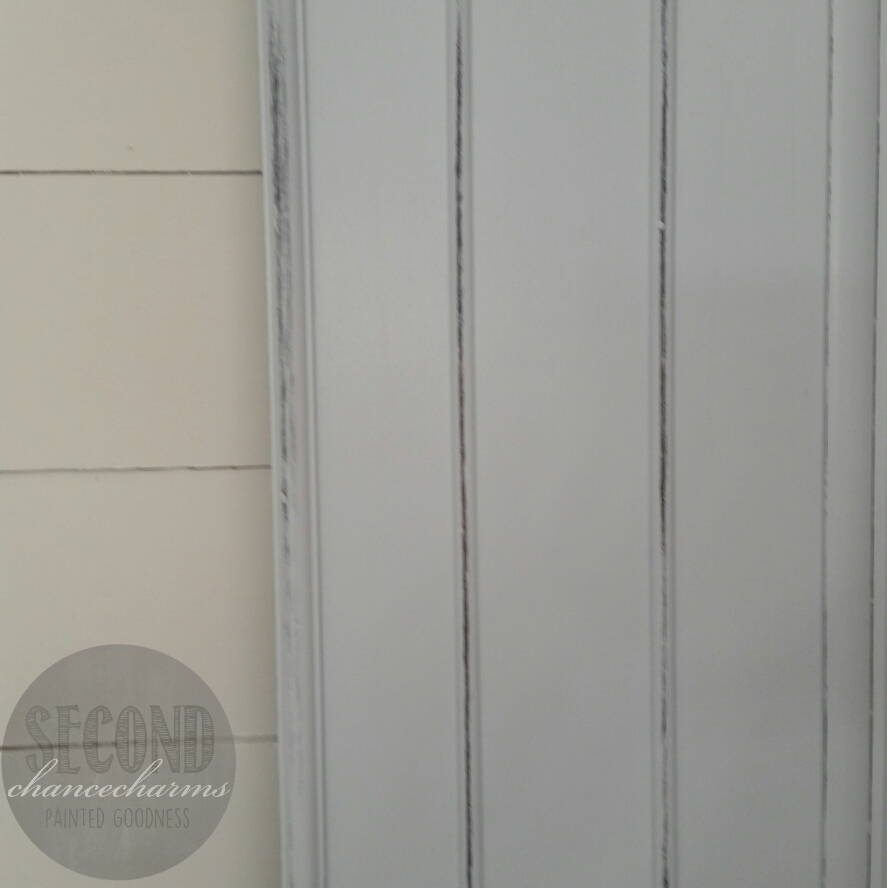 Refinished in Sherwin-Williams Reflection and lightly distressed.