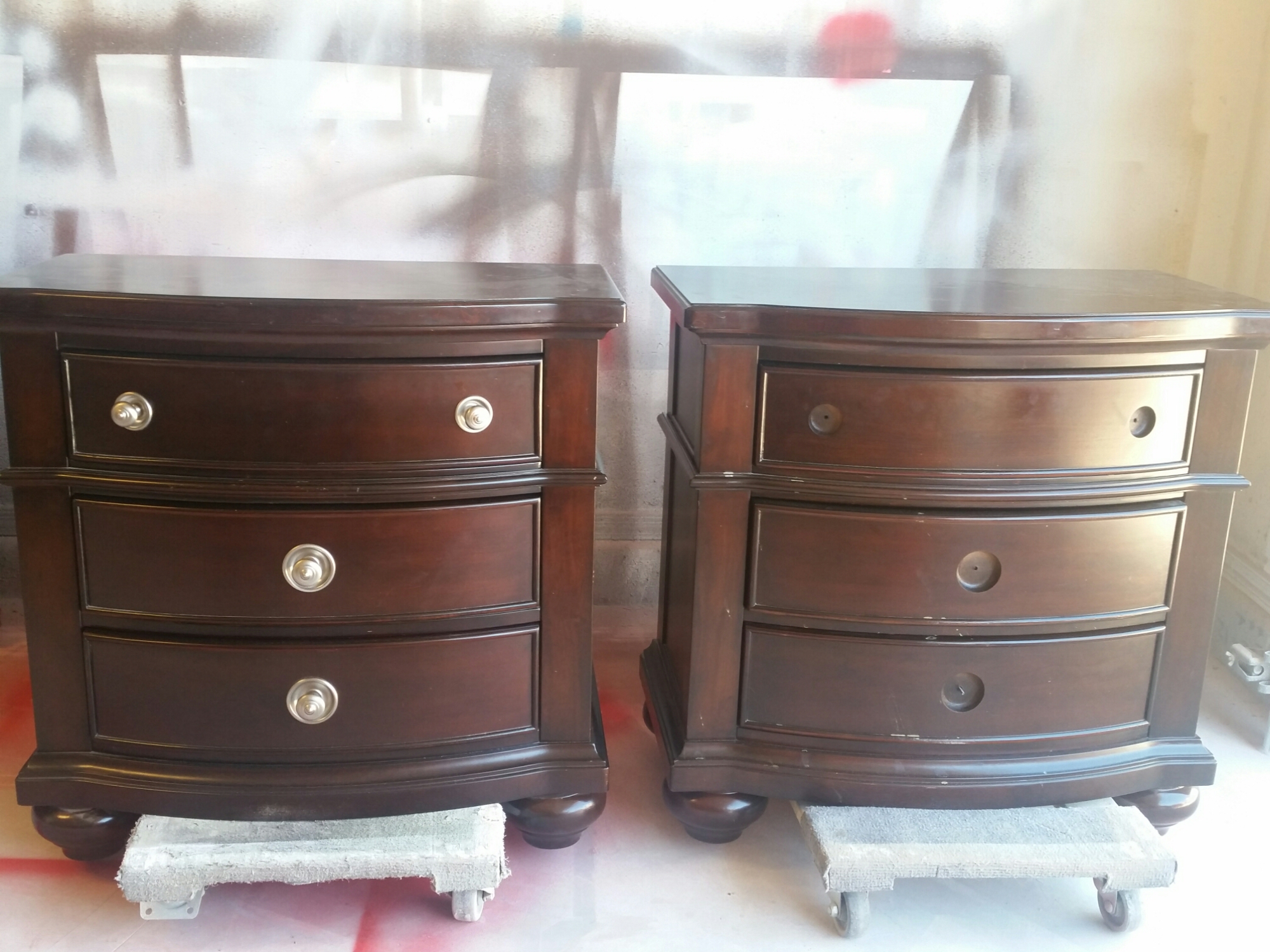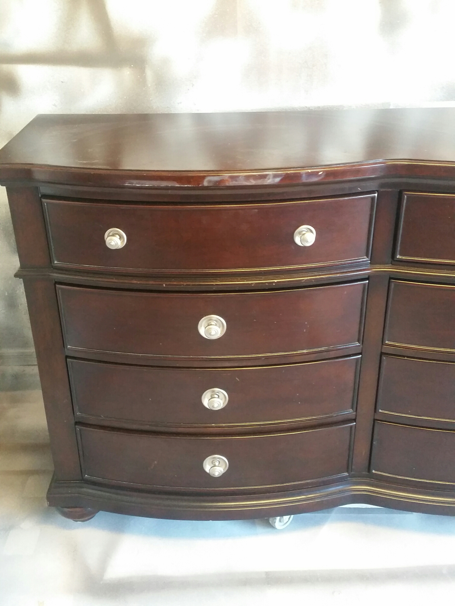 Before pictures of the 8 Drawer Dresser, 2 Nightstands and a King Sleigh Bed frame.
