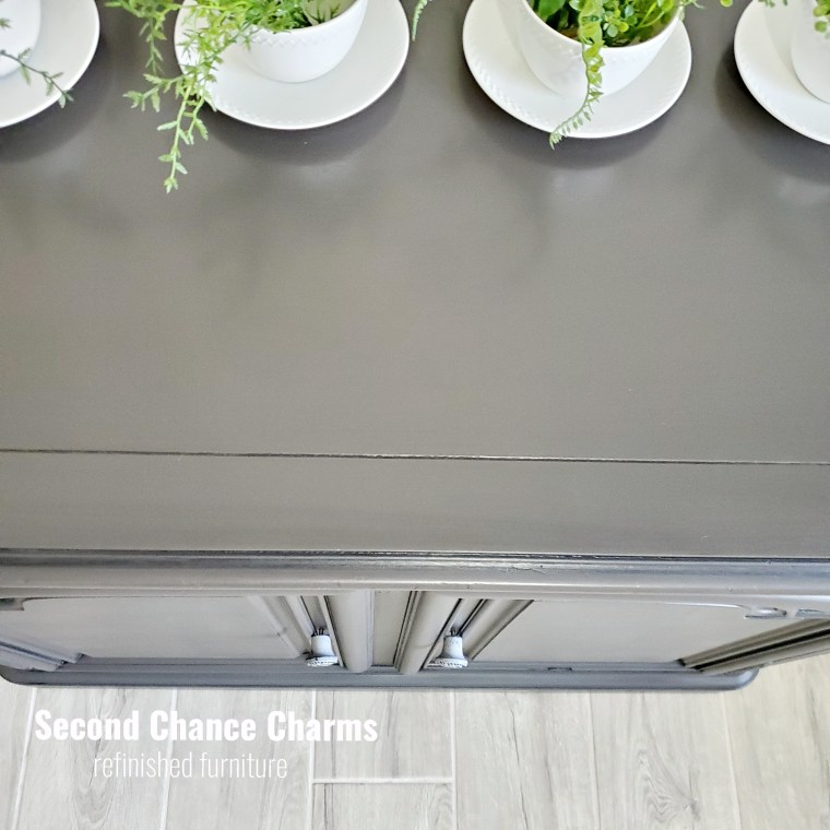 Once primed, I painted everything in Sherwin-Williams Greek Villa and did a light glaze using Sherwin-Williams Cadet, a soft blue grey to help tie in the porcelain enamel top. Finishing her off with adding nickel casters, like how she had before- once upon a time ago.