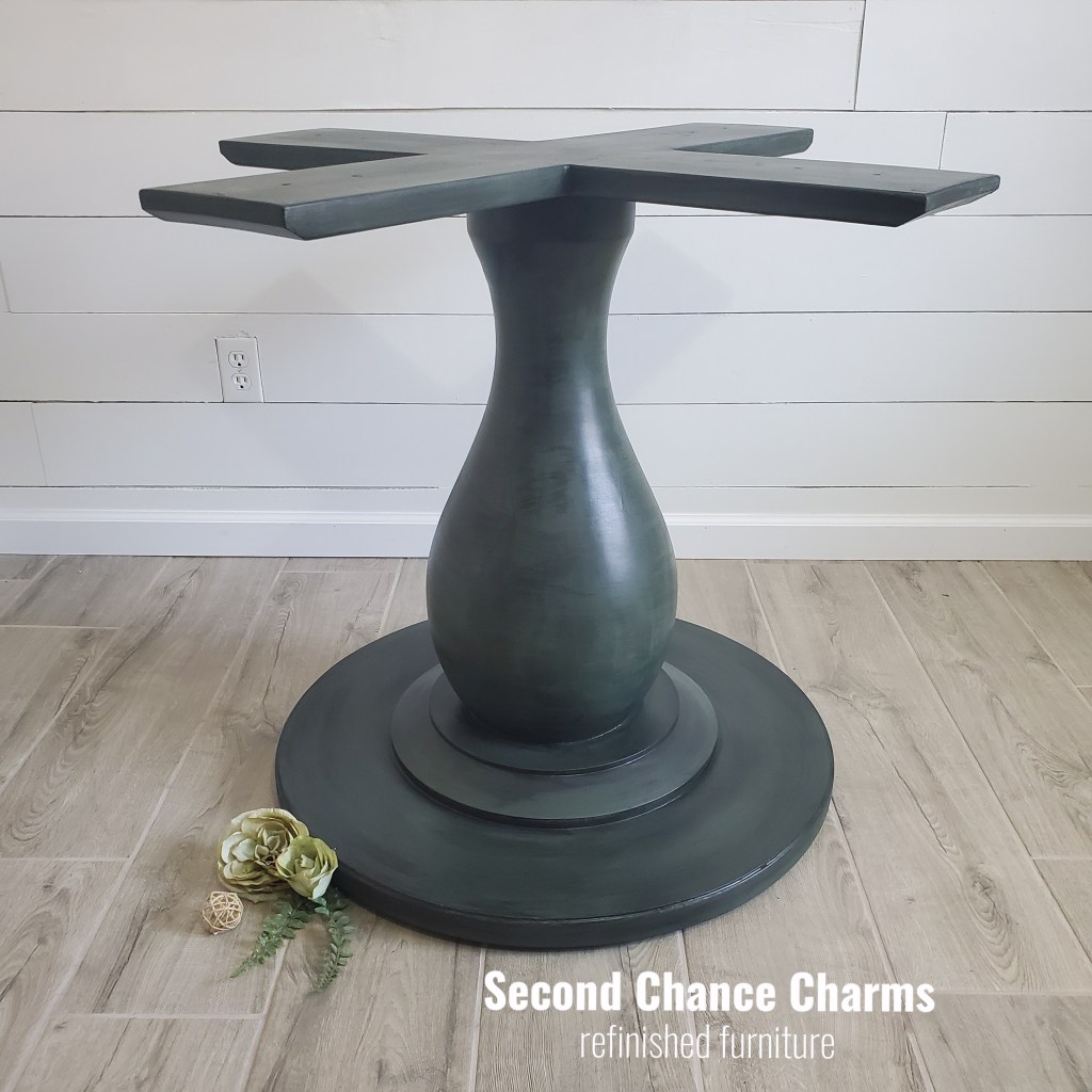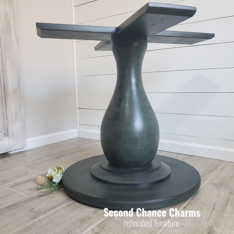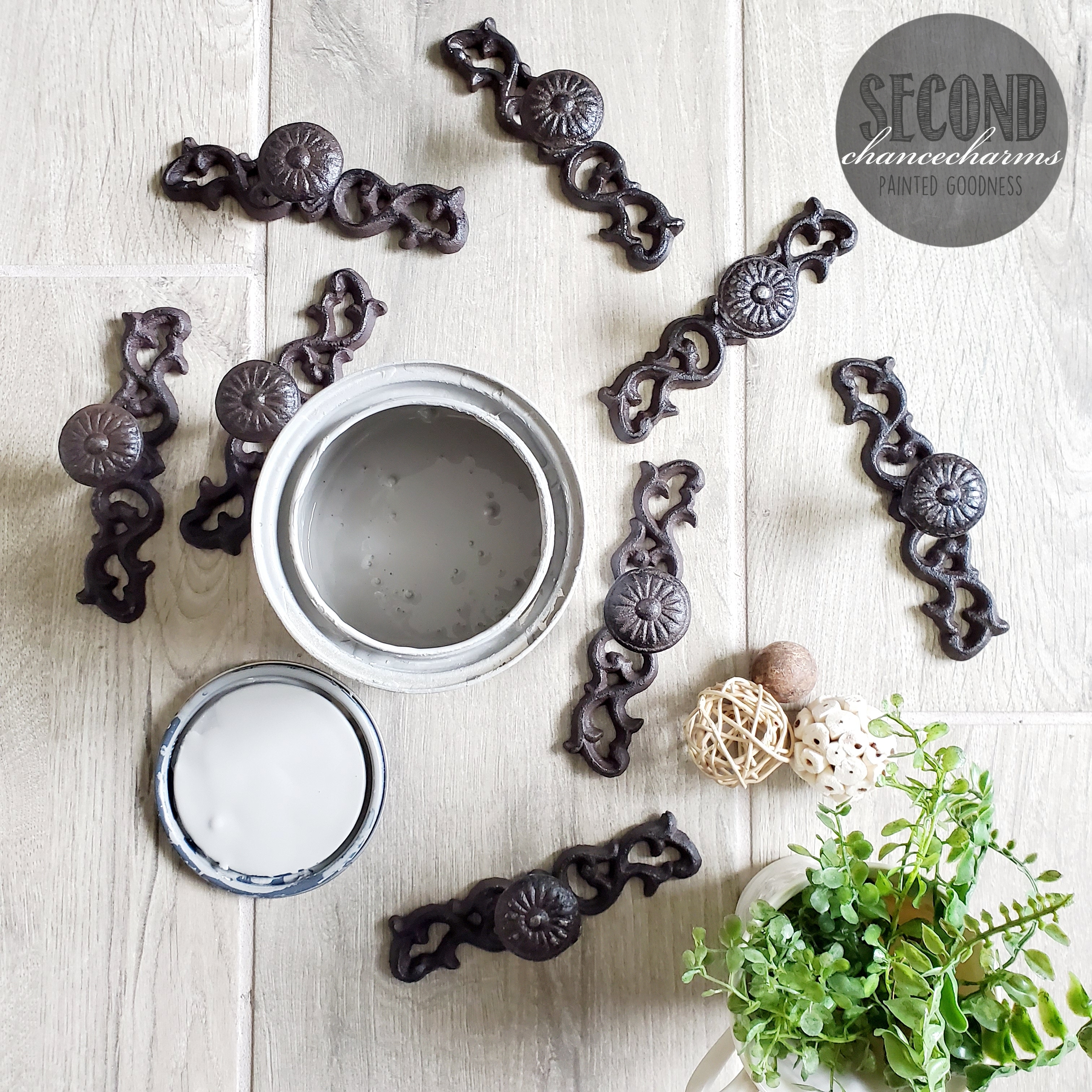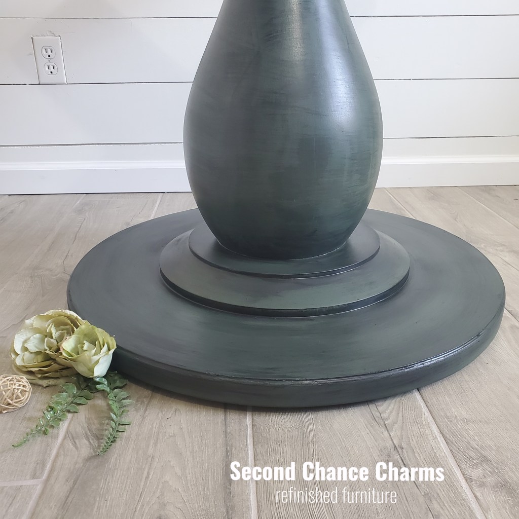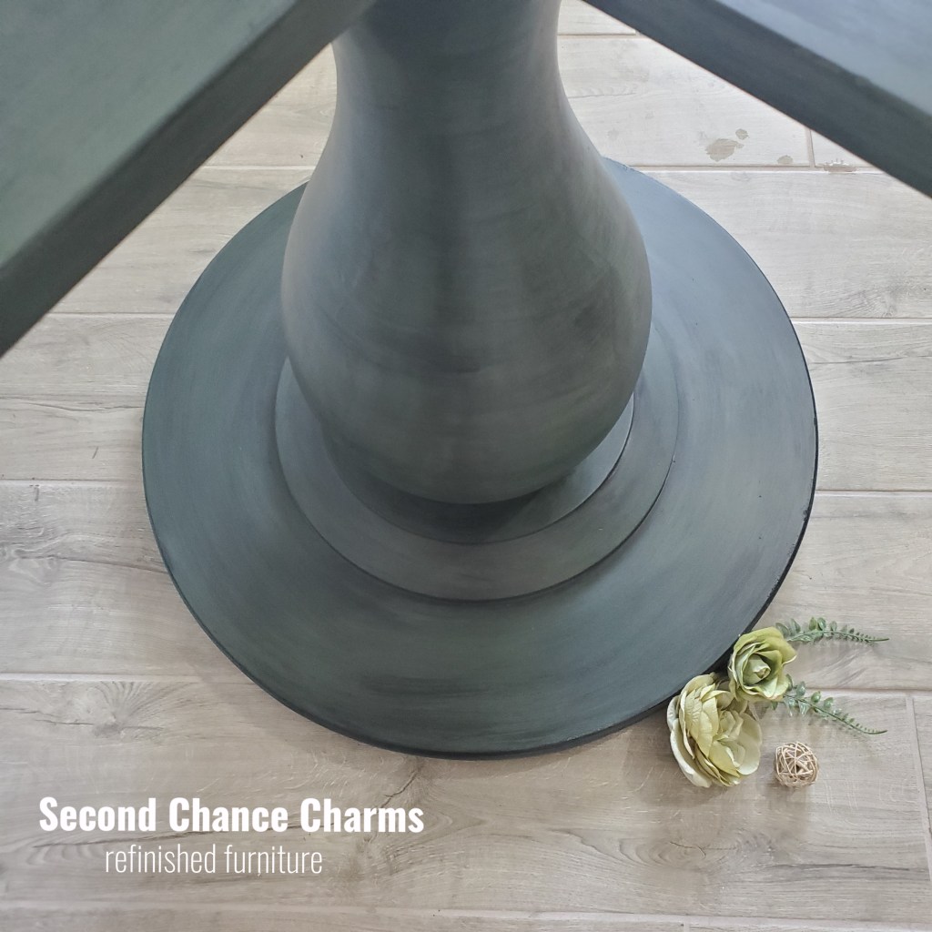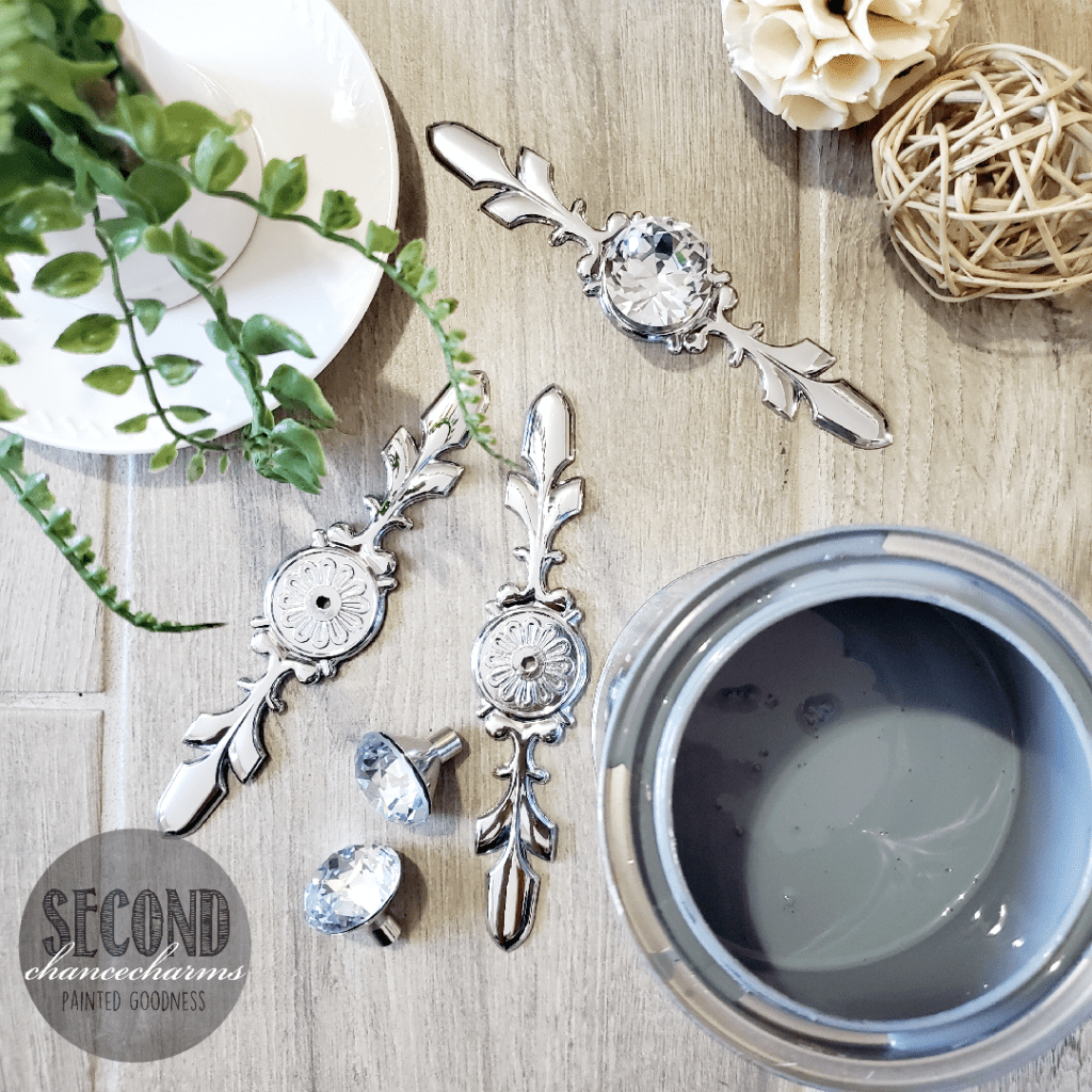 Refinished in Sherwin-Williams Dovetail and heavily distressed for a shabby look. Added new Brown Flourish Metal Knobs with Plates from Hobby Lobby to give her that lovely farmhouse charm. Perfect for any space!