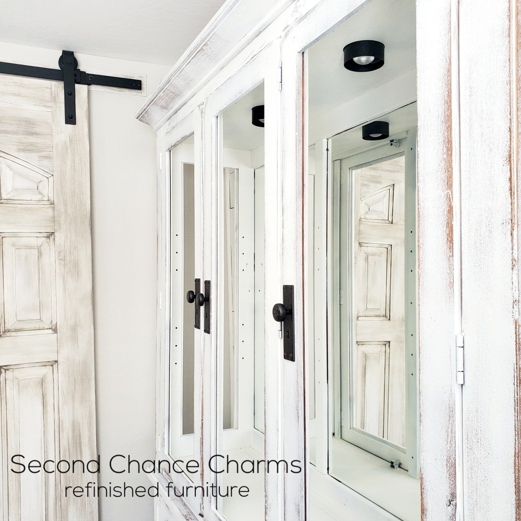 My client wanted me to do a finish that would match an existing piece in her home that will share the space with her mothers hutch. She kept all glass shelves at her home along with the glass decorative door inserts. Check out the before picture to get an idea of what this piece will look like with those lovely add on’s installed back on!