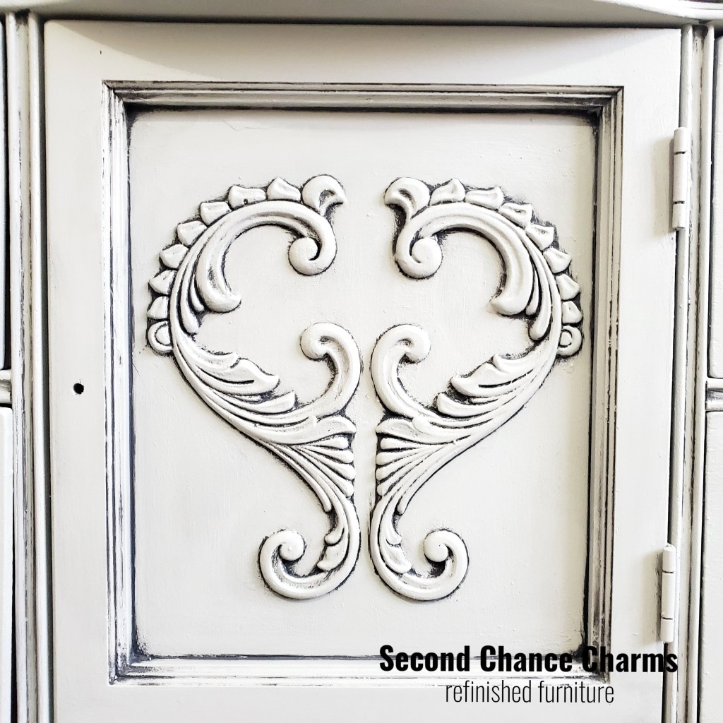 Such a gorgeous dresser my client has!! She refinished it sometime ago and wanted a new look. This dresser by Lexington has grooves, crevices and curves in all the right places!