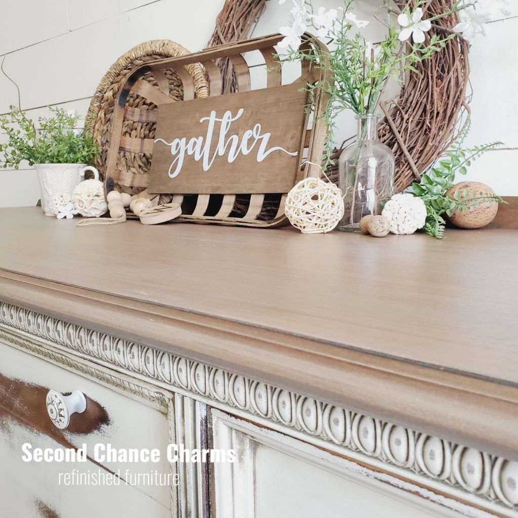 Gorgeous antique buffet with the perfect curves. I love her legs and wanted to go bare with them! I absolutely love this look and hope you do as well!!