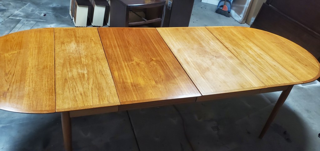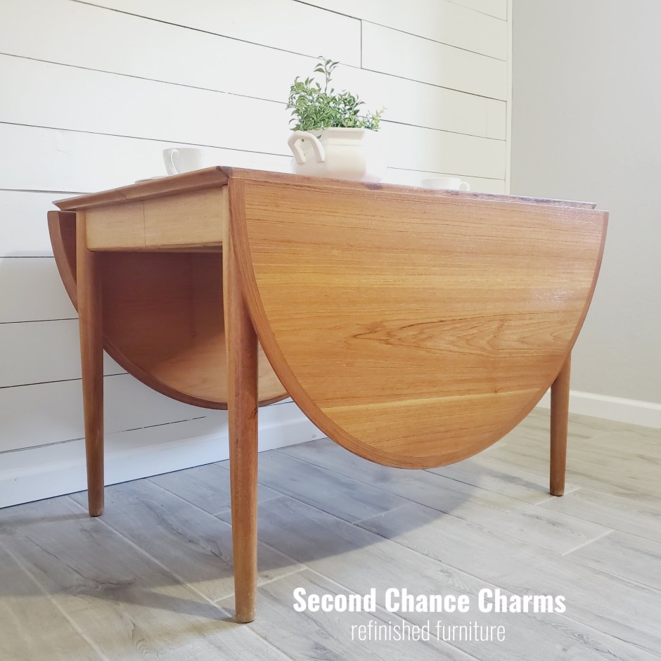 My client purchased this dining table back in 1953. It has lasted many years, giving many memories, but needed to be freshened up. I restored this table to its former glory for many more years to come! Oh- and just in time for my clients 90th birthday party!