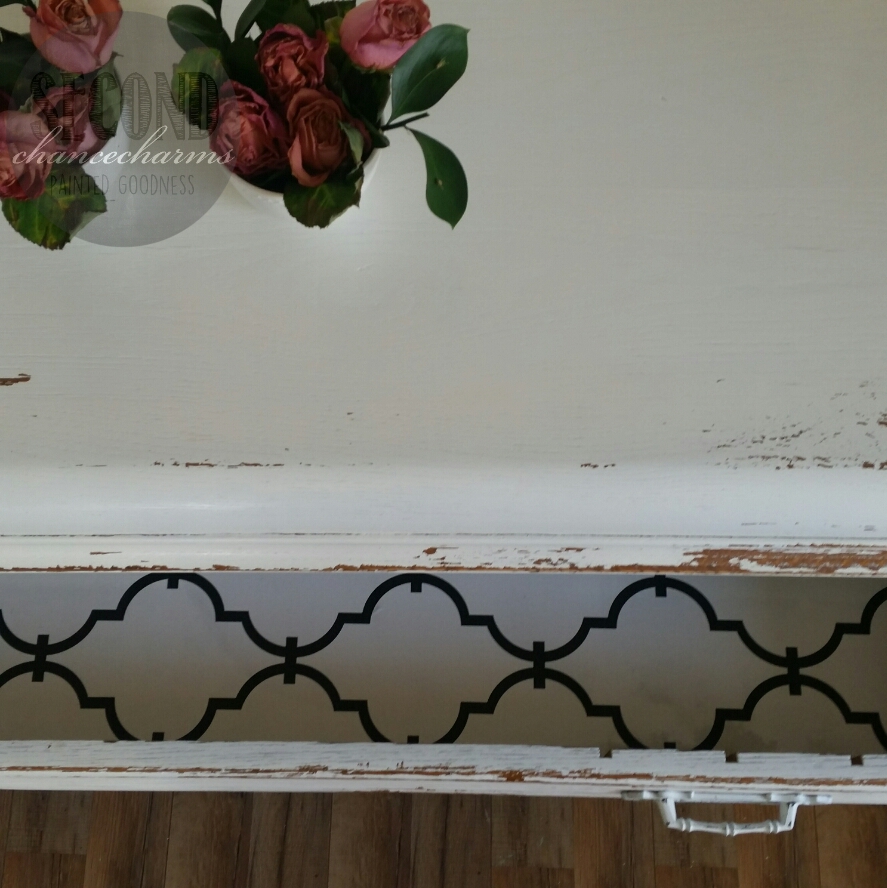 Last year I refinished a bedroom set for a client in a white lightly distressed in the lines, with stained tops. Another customer saw them and said “Hey!!! I have that exact set and I love them done in white!”