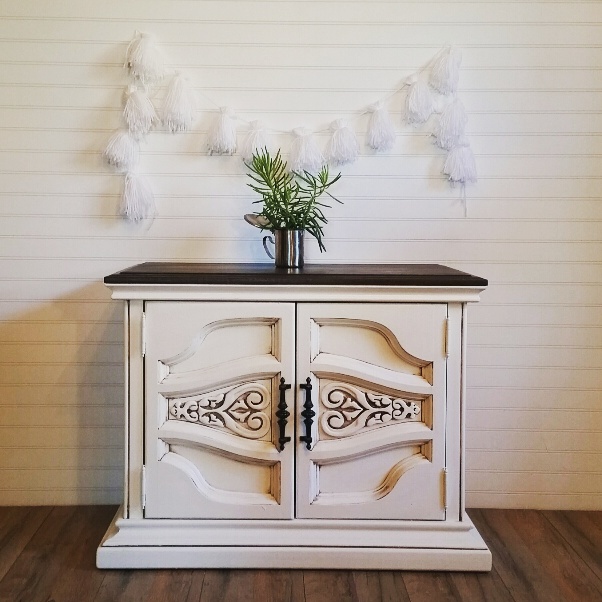 Enclosing this area and making it a den is perfect for anyone who will need an office/playroom or for me, a boutique room to store my inventory pieces and staging area! With two openings entering this room; one hallway area and a huge arch doorway. I had a few ideas. I wanted to enclosed the hallway area providing shelves for storage and add barn doors to close off the room when not in use.