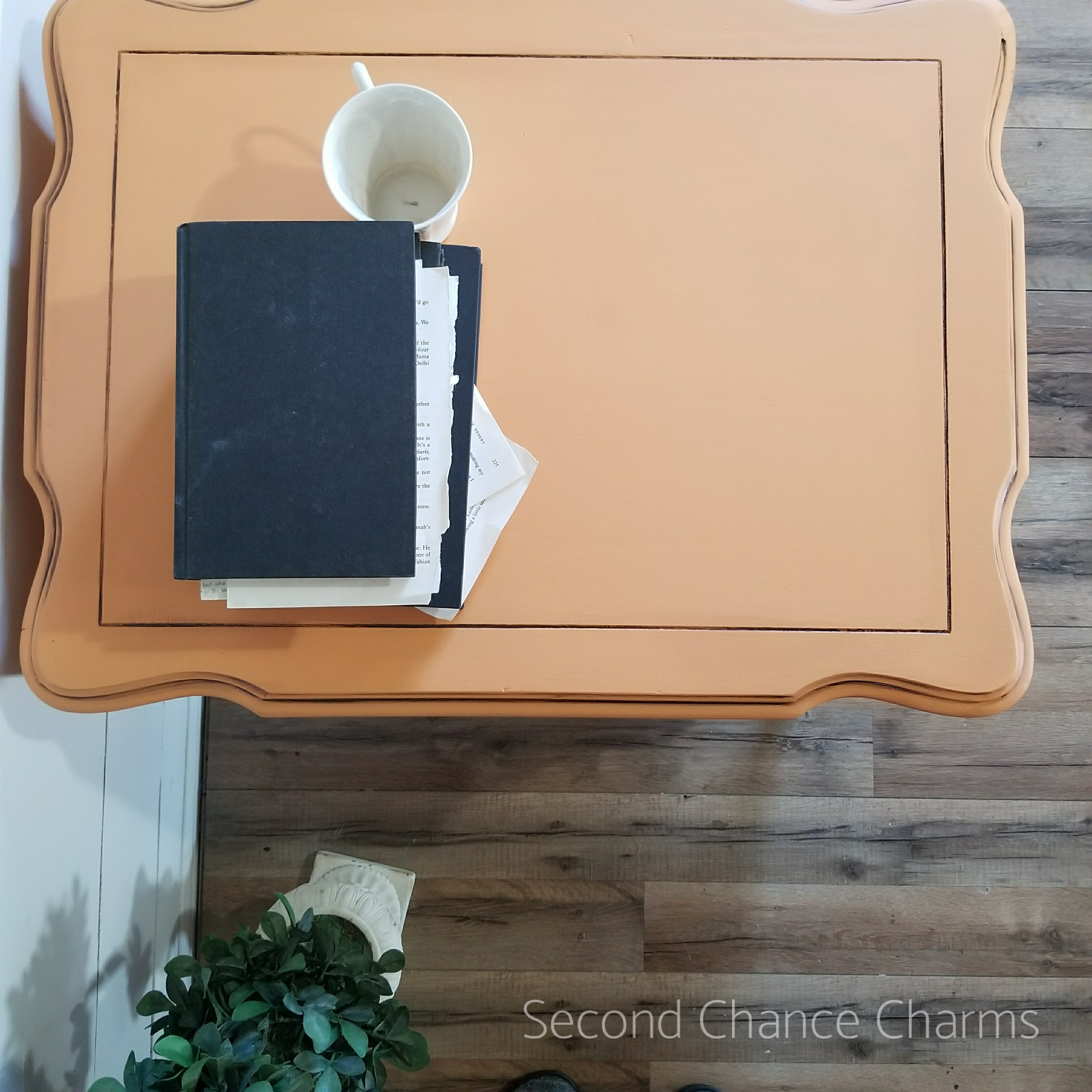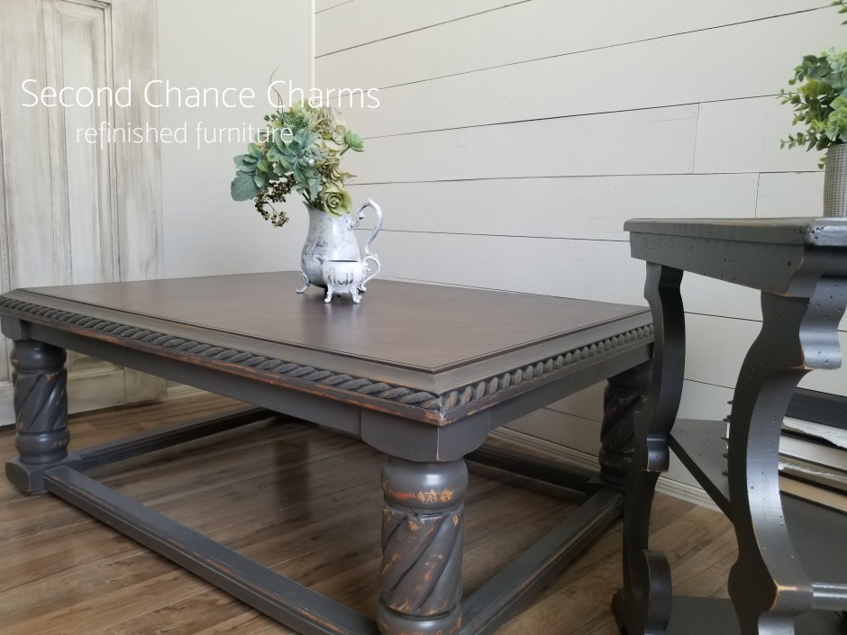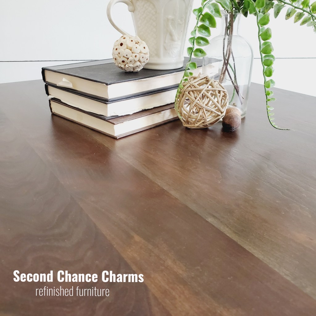 Back in December of 2016 I refinished a coffee table for my lovely client. She recently moved and wanted her end table to match, but had a complication with the movers in regards to the coffee table. As I was fixing the top to the coffee table, I sent her a photo of the progress. Short story, we changed the coffee table a little bit and refinished the side table to match!