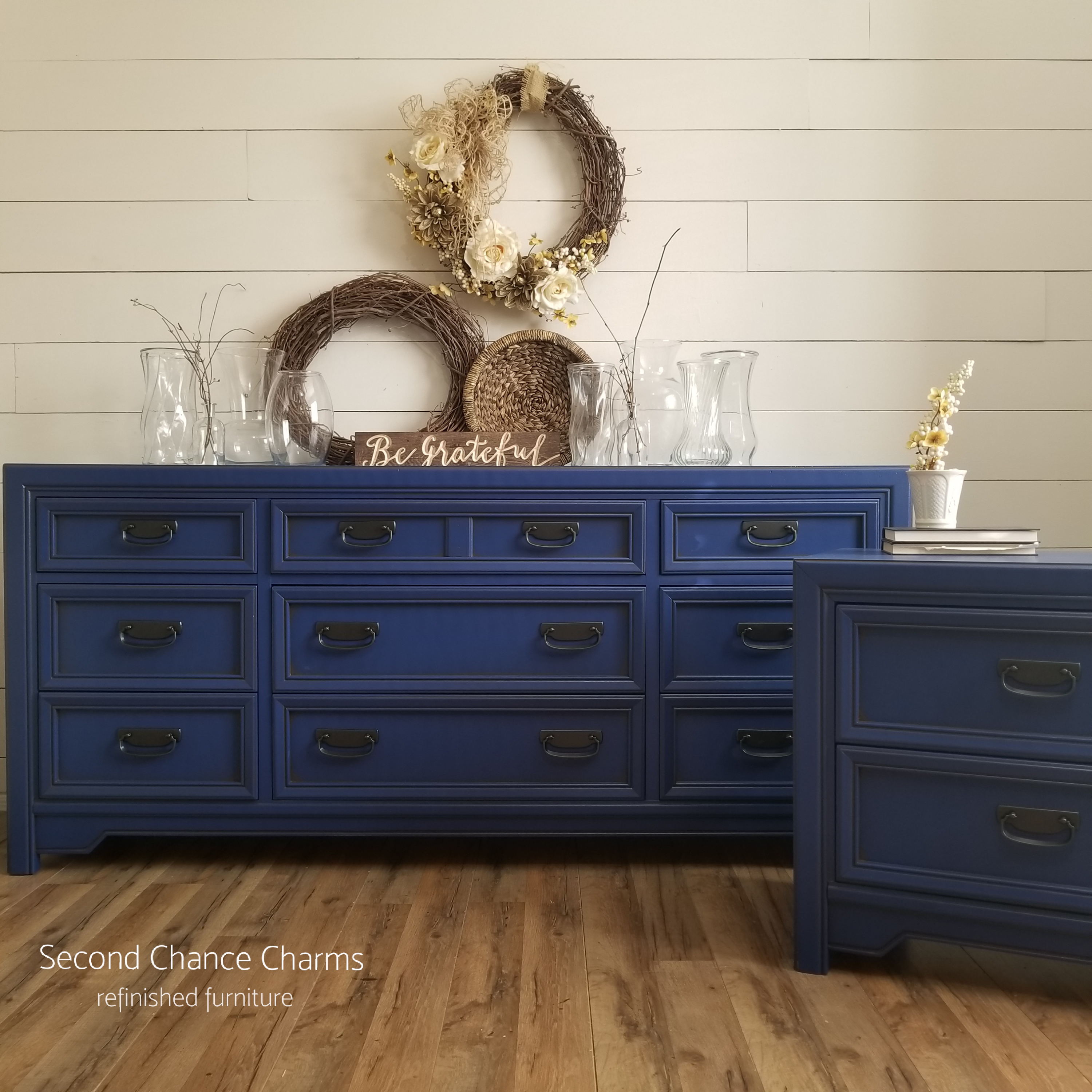 I found this gorgeous set and placed her over in In The Studio to be customized! A client snagged her up and had a vision to use this dresser as a buffet in her kitchen space along with using the nightstand as an endtable.
