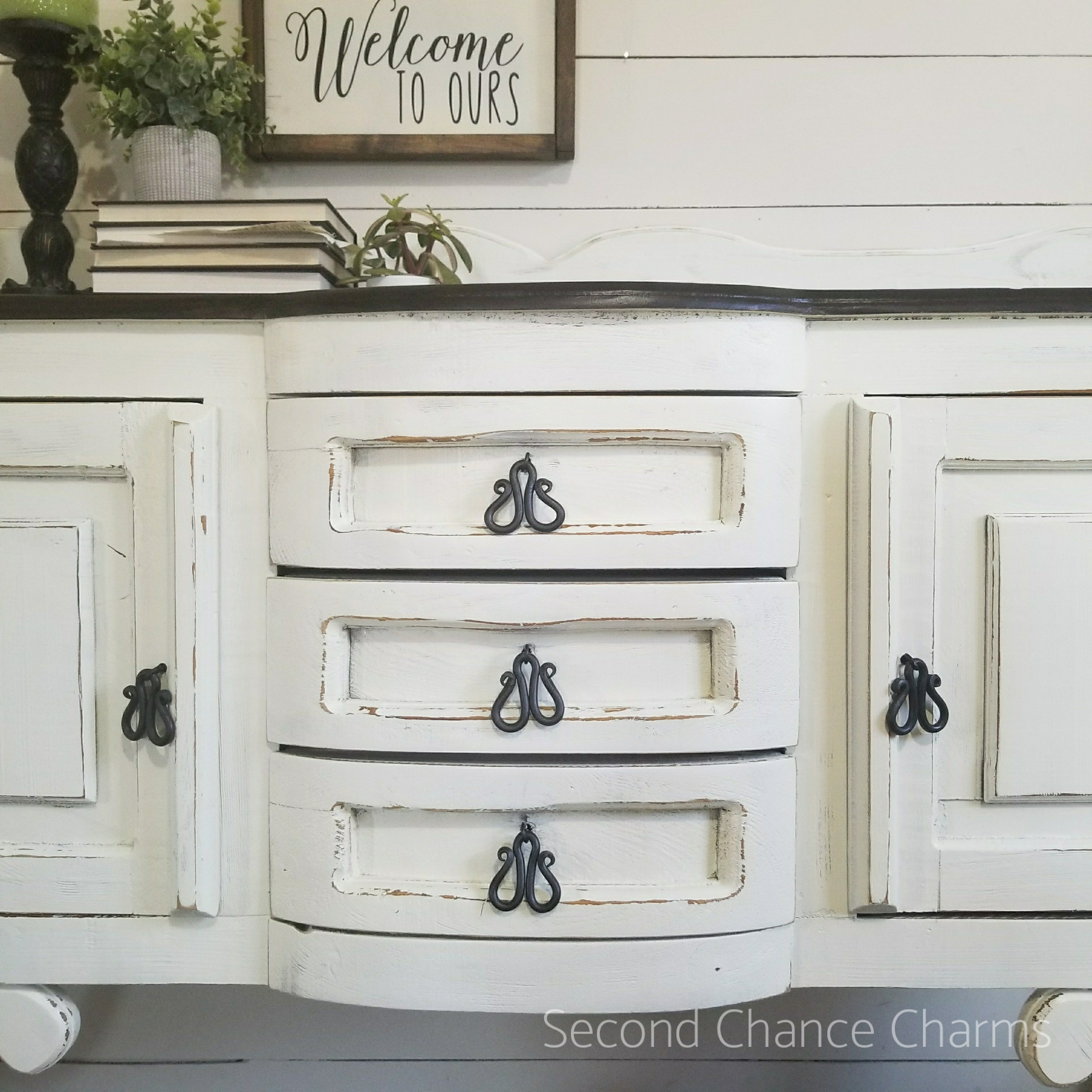 Refinished in Sherwin-Williams Oakmoss and heavily glazed in a dark brown slightly distressed in areas I saw fit for an aged look. Removing the original knobs and adding different pulls that I revamped in a Chestnut classed up this handsome fellow. I left his casters on, cleaned them up and refinished them in Chestnut as well for an overall makeover.
