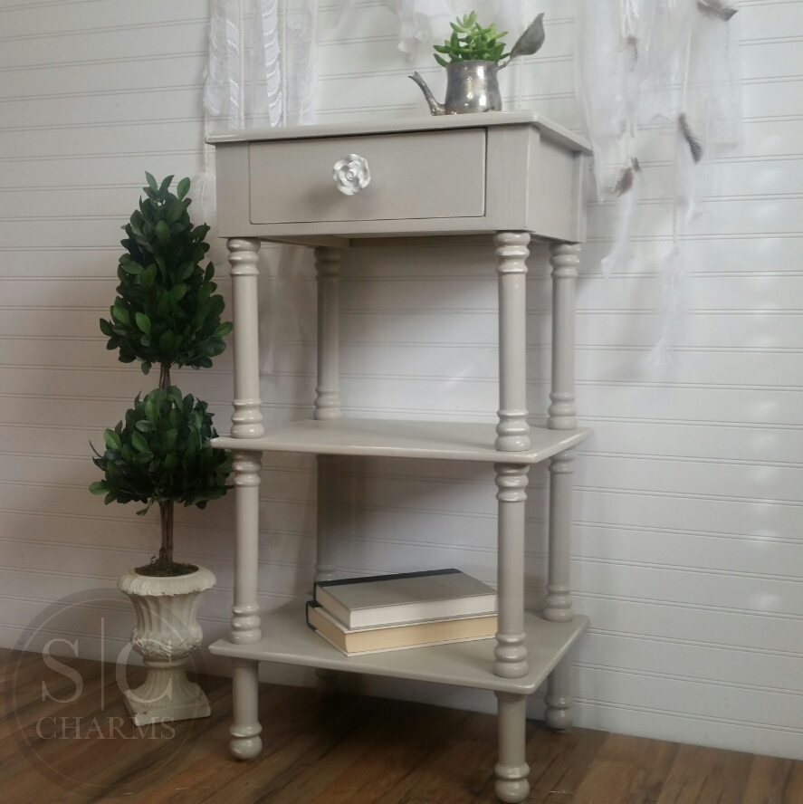 I had this little gal up for customization In the Studio and she was quickly picked up by a returning clients’ mother. This unique stand, possibly once used for plants, will be used in a guest bathroom. I love the idea that my client wants to put baskets on the bottom to house toiletry’s and personals.