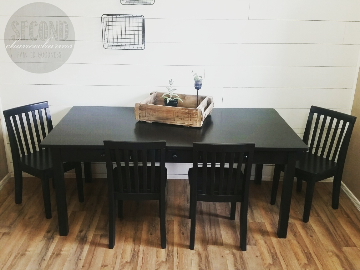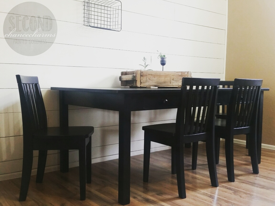 For the transformations, I opted for Sherwin Williams Tricorn Black, which gave that classic and timeless appearance to both the kids’ table and the KitchenAid stool, while Reposed Grey brought a soft, elegant touch to the dresser, creating a stunning contrast that truly revitalized her space.