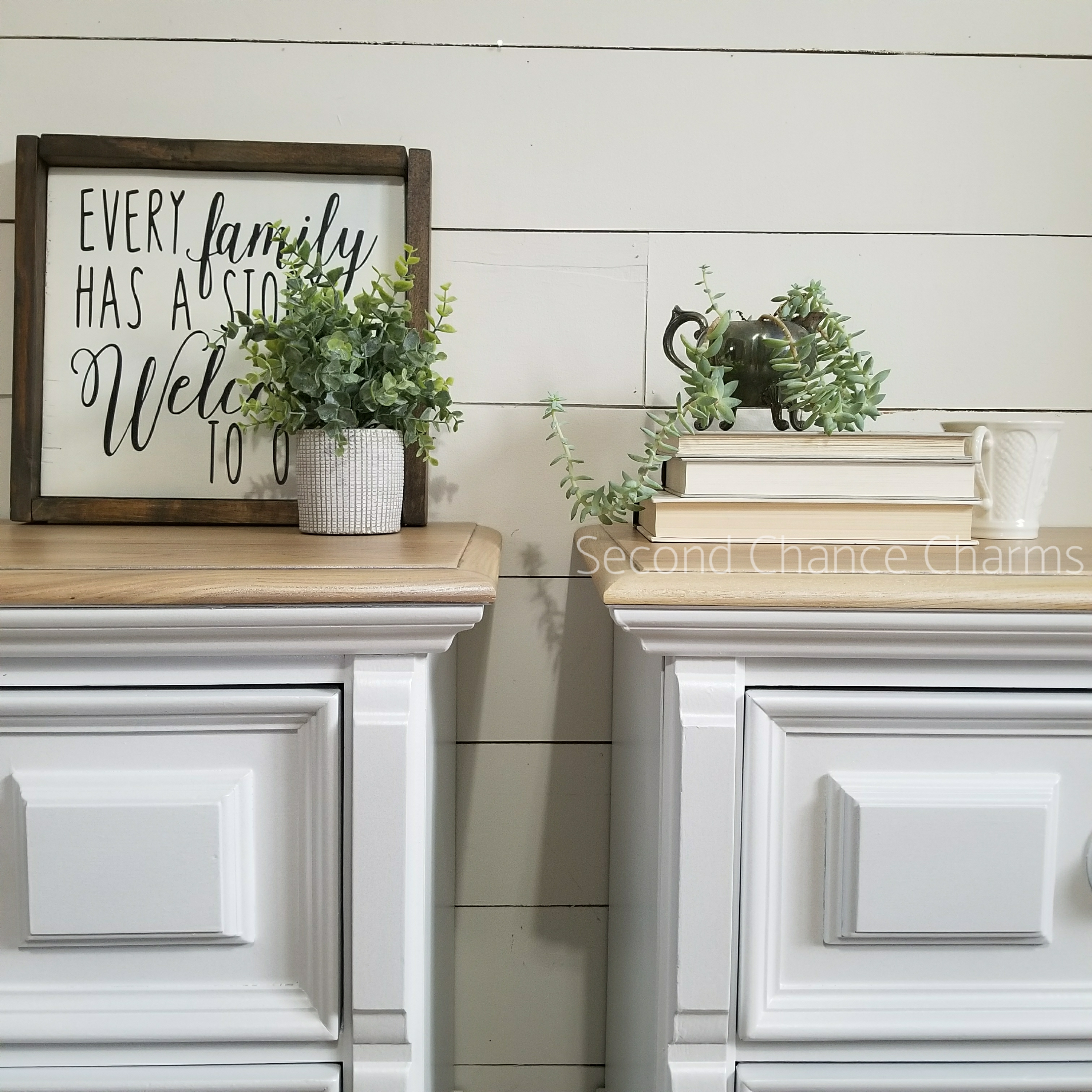 I inquired these two nightstands that were DIY projects that didn’t turn out so great for the previous person. Both painted in black but the sheens were different. A returning client saw my post on Facebook and wanted them for her self and to be refinished in something I haven’t done. Pearl. Challenge accepted!
