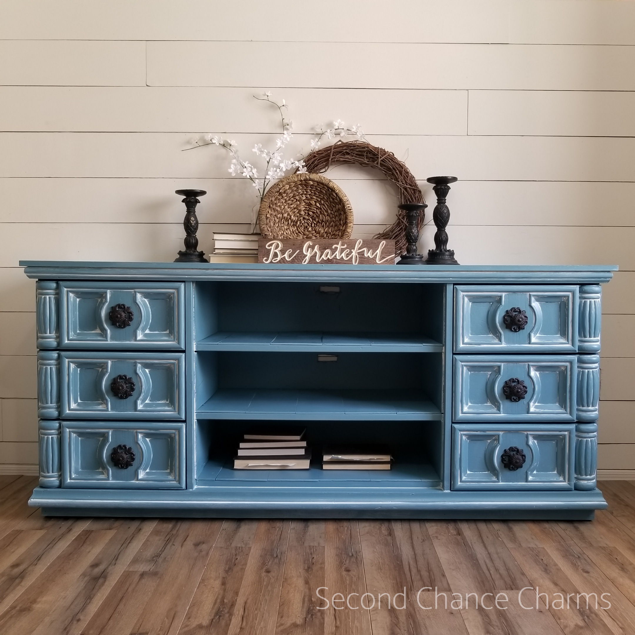 This huge massive Tv Entertainment Unit has a top as well that I couldn’t put up by myself, nor place this entire four piece set in my staging area for a true picture. Nonetheless, I am completely over the moon with how she turned out!