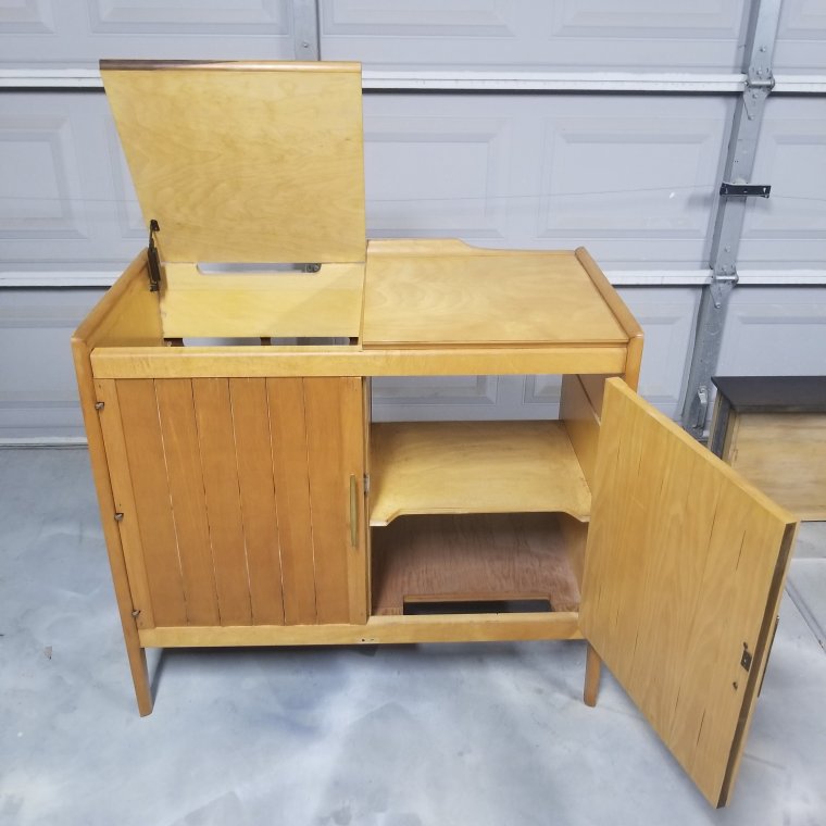 When you find the right sized piece for your home but don’t need the broke record player that’s in it, take it out and add a shelf! This perfect little record player stand has been upcycled and turned into a sideboard for my clients dining room.