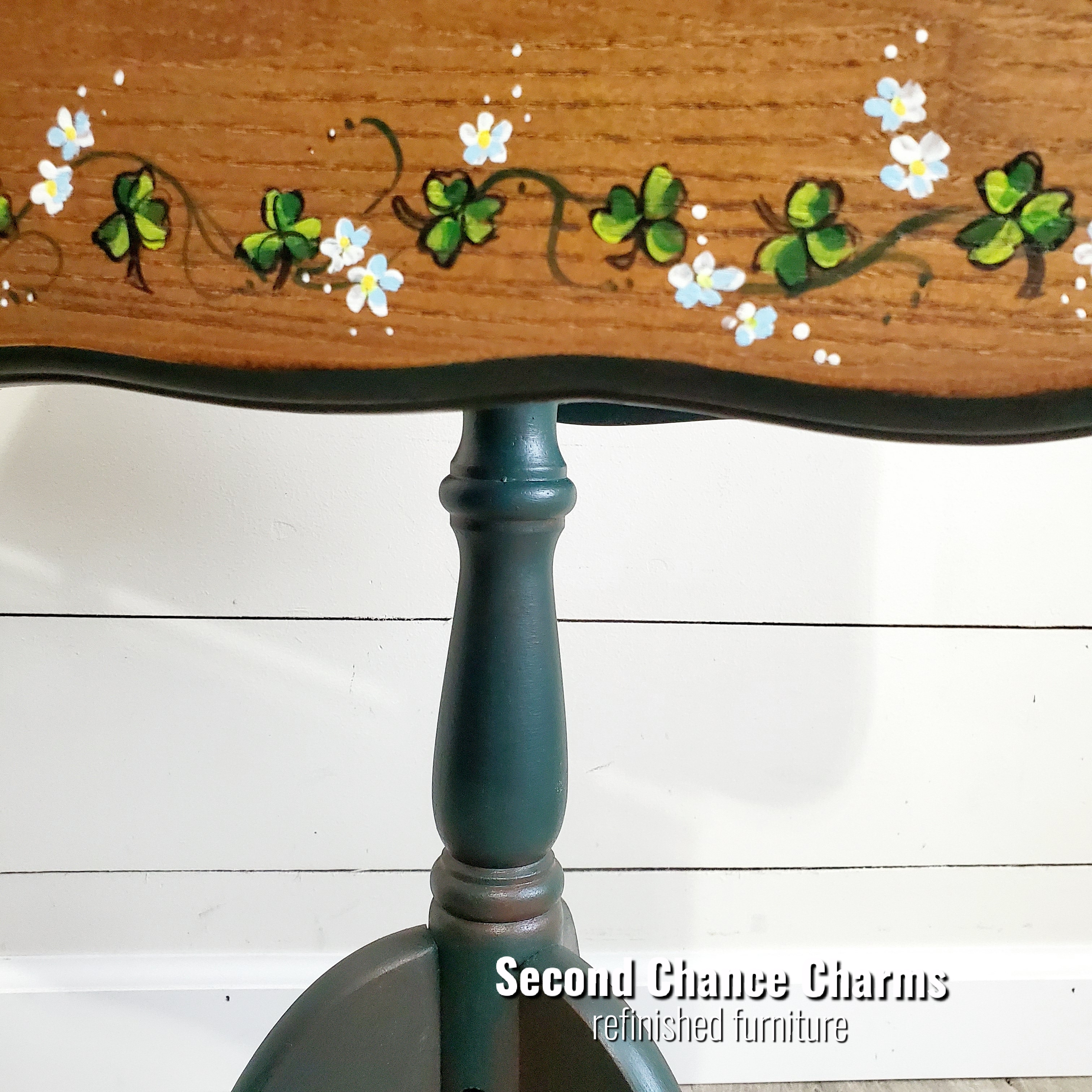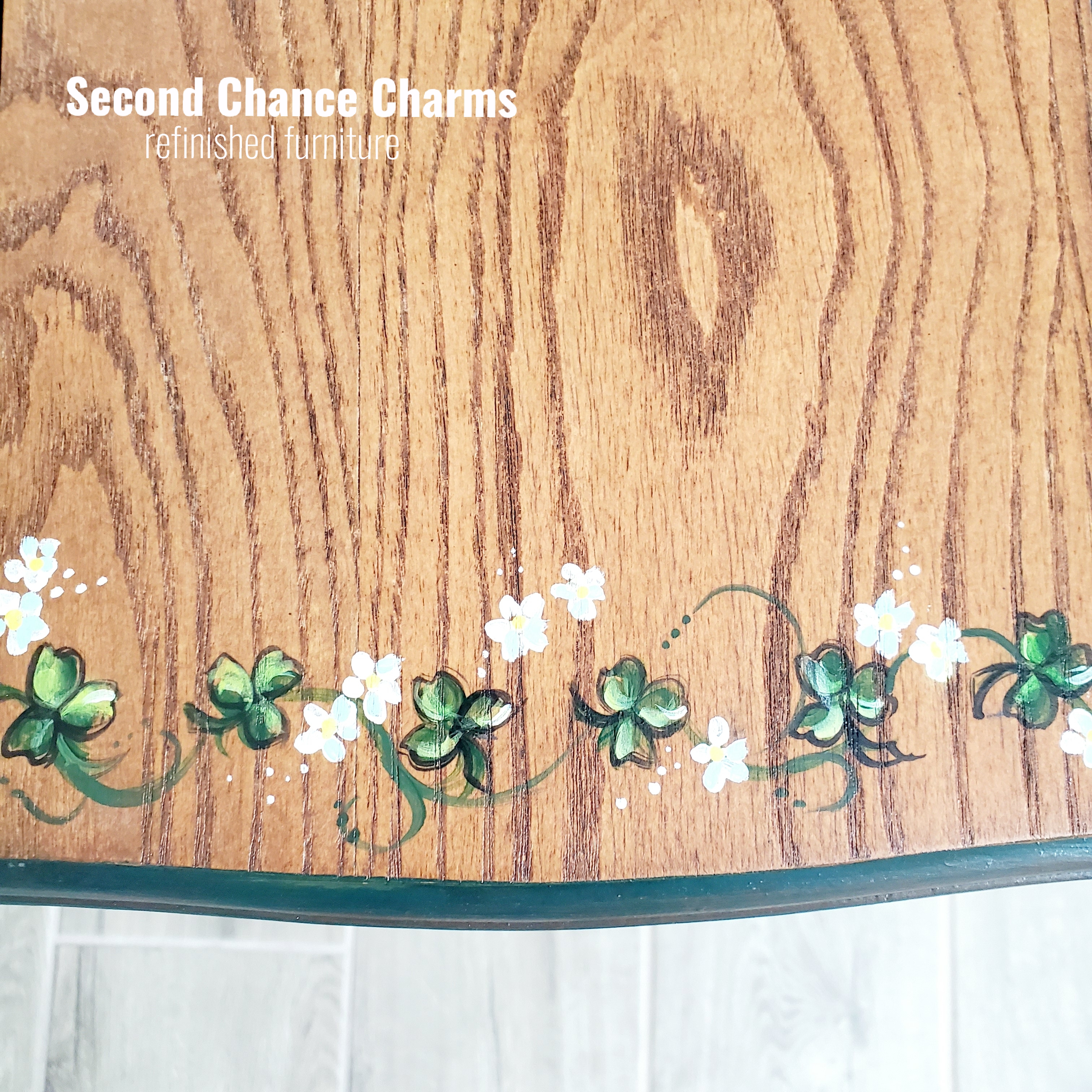 This quaint side table has had many layers of love in her life in the form of paint layers, each telling a story of transformation and cherished memories. My client wanted to match it to a beautiful dresser she has in her Guest Room, creating a cohesive look in her home that reflects her personal style, which leans toward vintage charm.