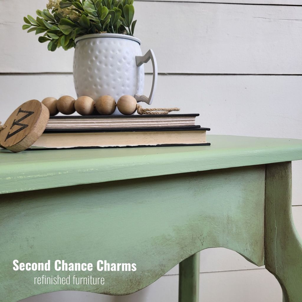 This quaint side table has had many layers of love in her life in the form of paint layers, each telling a story of transformation and cherished memories. My client wanted to match it to a beautiful dresser she has in her Guest Room, creating a cohesive look in her home that reflects her personal style, which leans toward vintage charm.